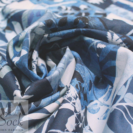 The Liberty Art Prints limited edition seasonal designs are so wonderful, we always bring in a few each season. This one is from the Spring 2022 seasonal collection of Liberty Art Fabrics, a Tana lawn weight cotton print, imported from England. The print is called 'Arminelle' (12.25" repeat) and features shades of denimy blue (PANTONE 19-4125, 13-4103, 13-4411, 16-4134, etc.). The cloth is an exquisite quality cotton lawn, lightweight, semi-opaque, soft with cottony drape, and it is perfect for blouses, shirts, dresses, skirts, etc! Hand wash cold, hang to dry (please test first).