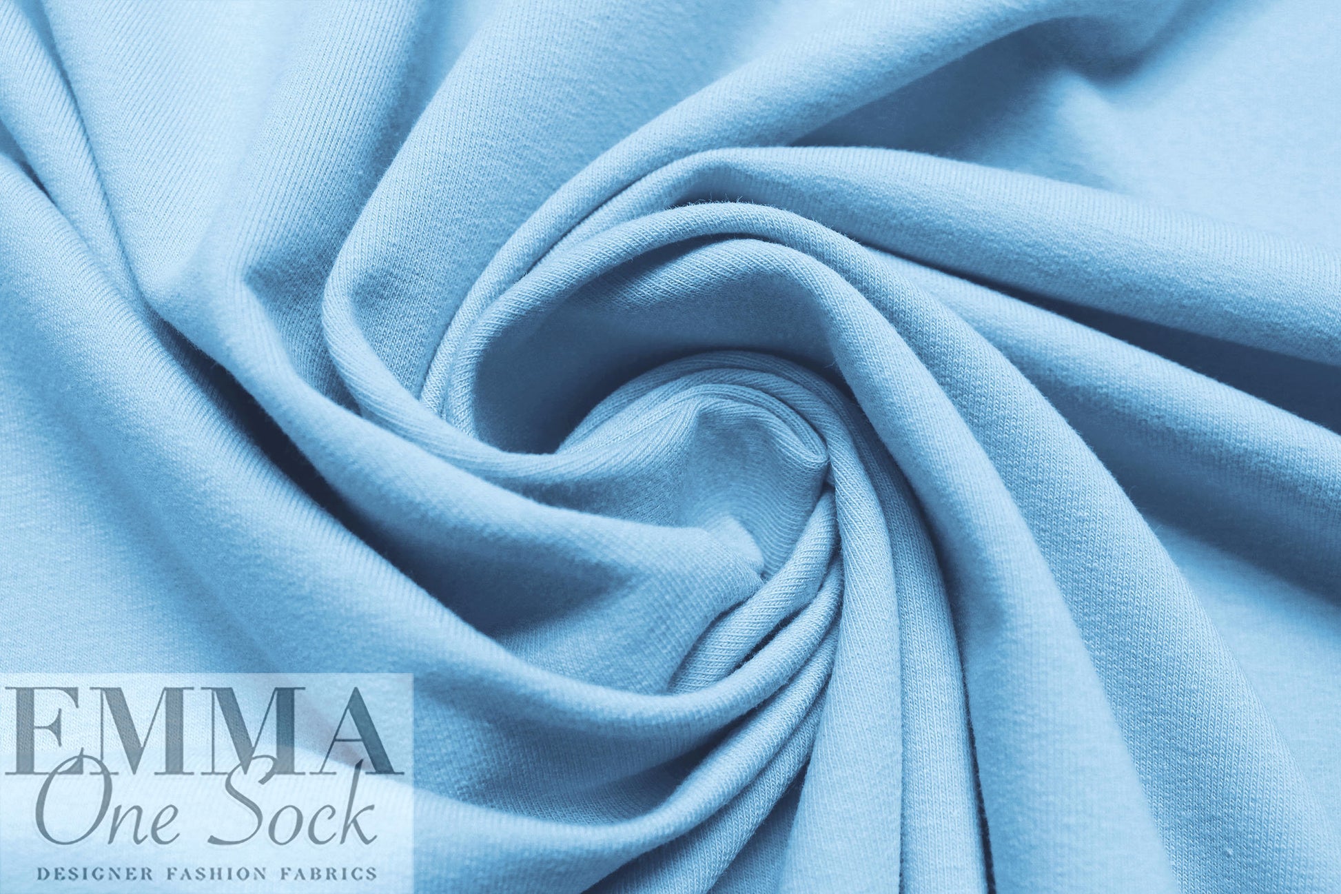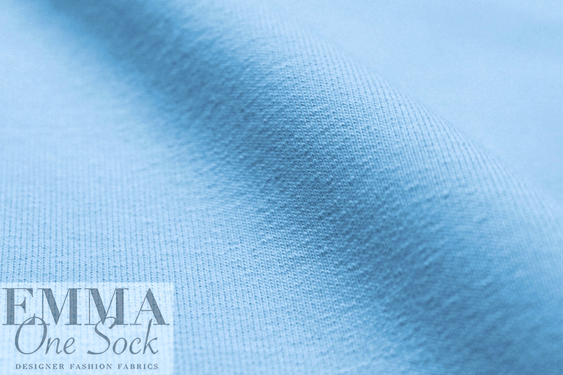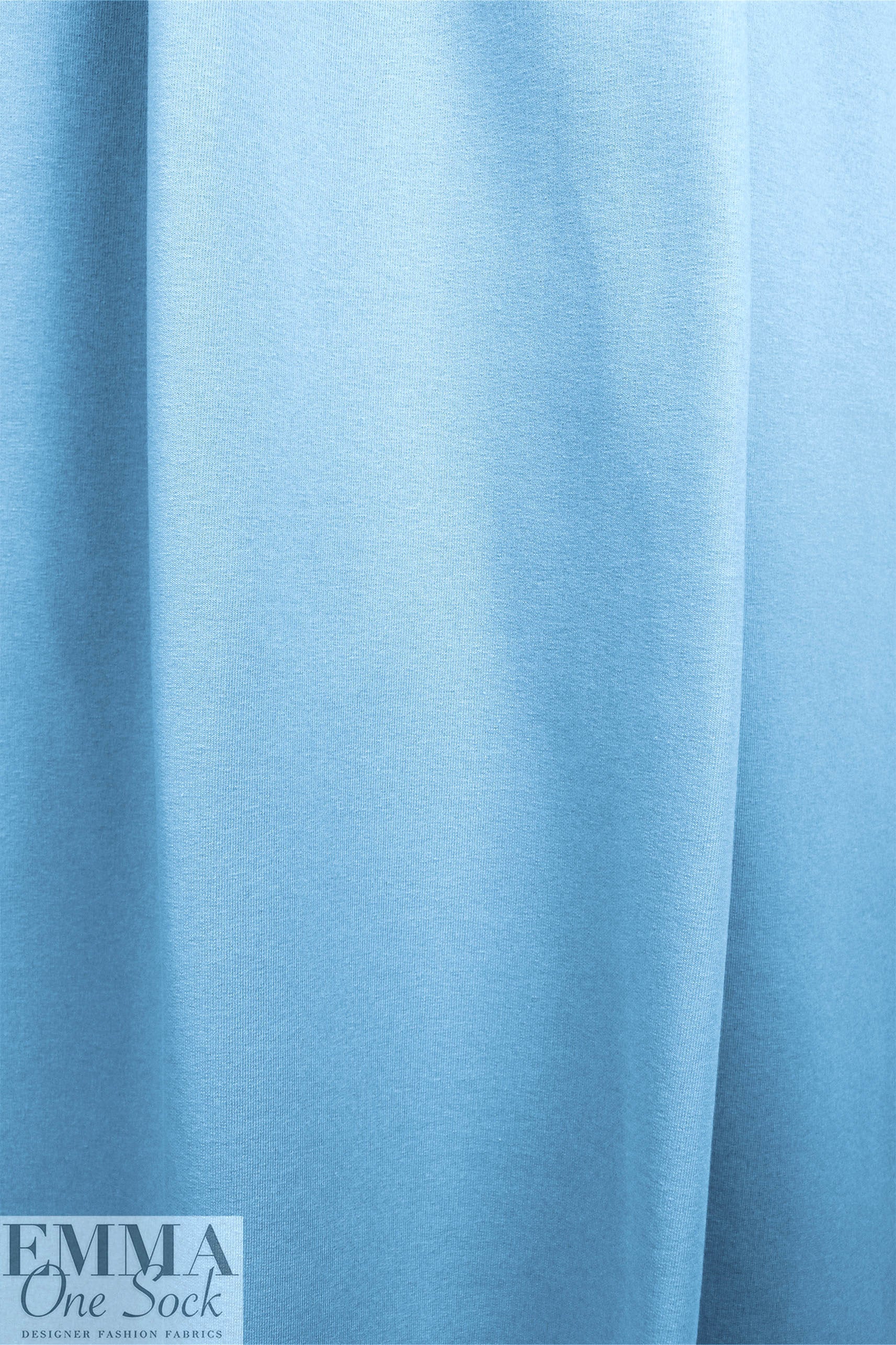 Here's an AMAZING cotton/spandex French terry solid imported from The Netherlands! First, the quality of the fabric is sublime, soft and substantial, with about 30% stretch in both directions. The reverse has a flat terry texture. It is opaque and has a soft hand and drape with some body. It is Oeko-Tex certified for non-toxic chemicals and dyes. The color is bonnet blue (PANTONE 16-4134 but a shade lighter and brighter). Make a tee, top, hoodie, tunic, skirt, dress, etc. The manufacturer recommends hand or machine wash warm, hang to dry. Please test first.