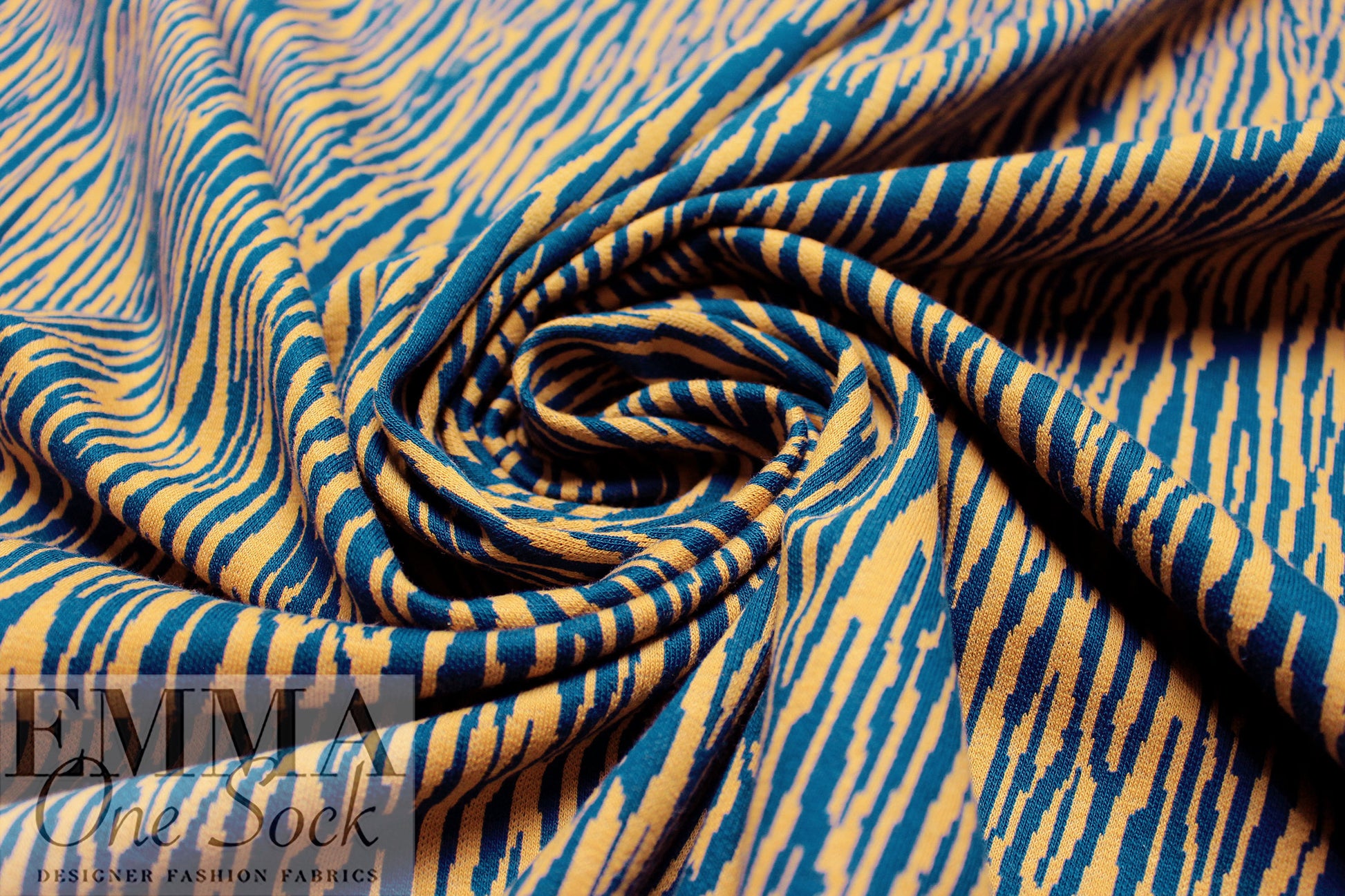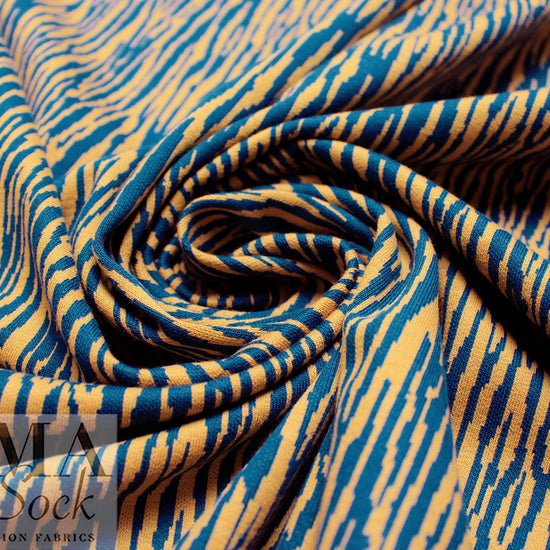 organic cotton GOTS bark jacquard knit - mustard/lagoon