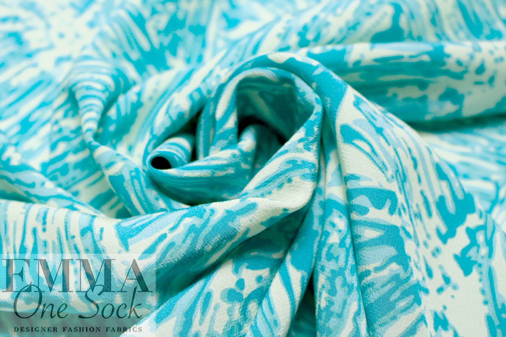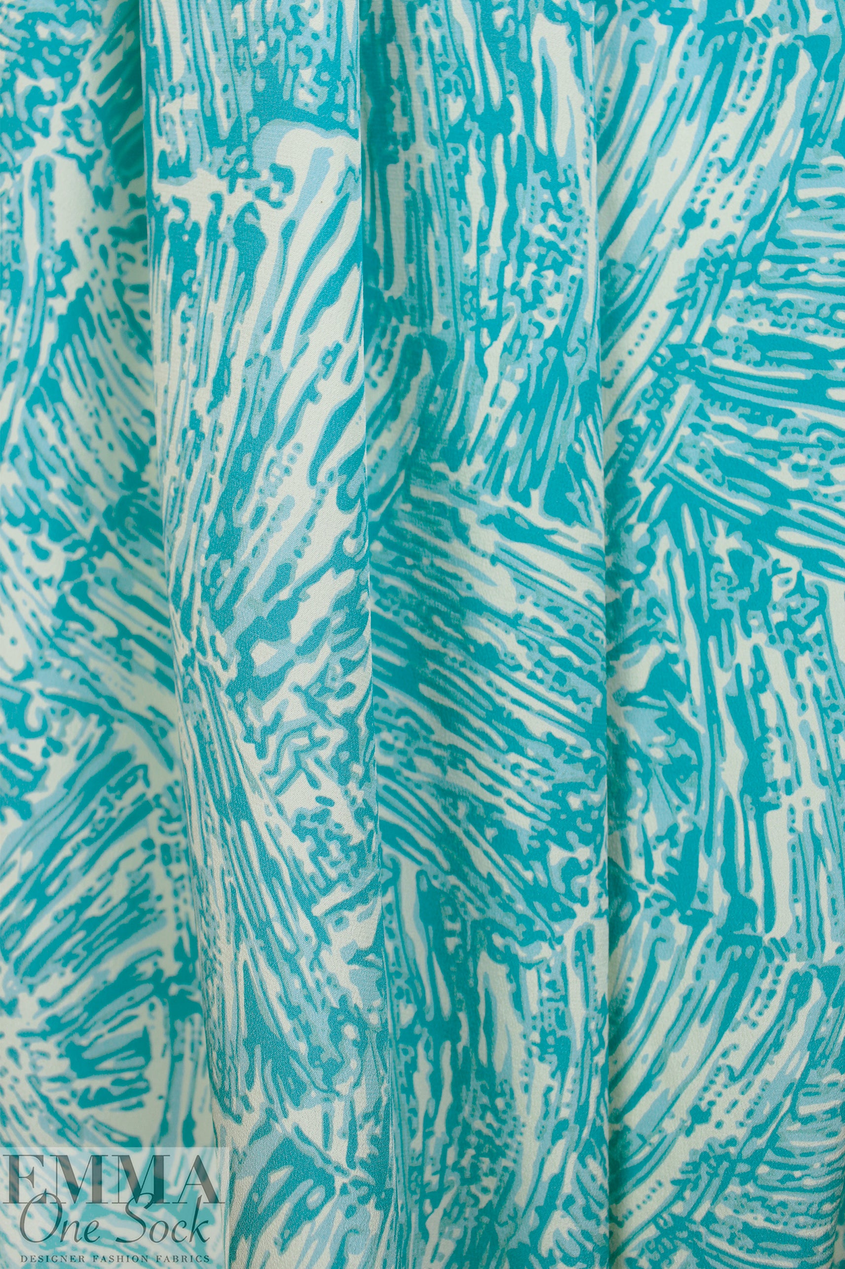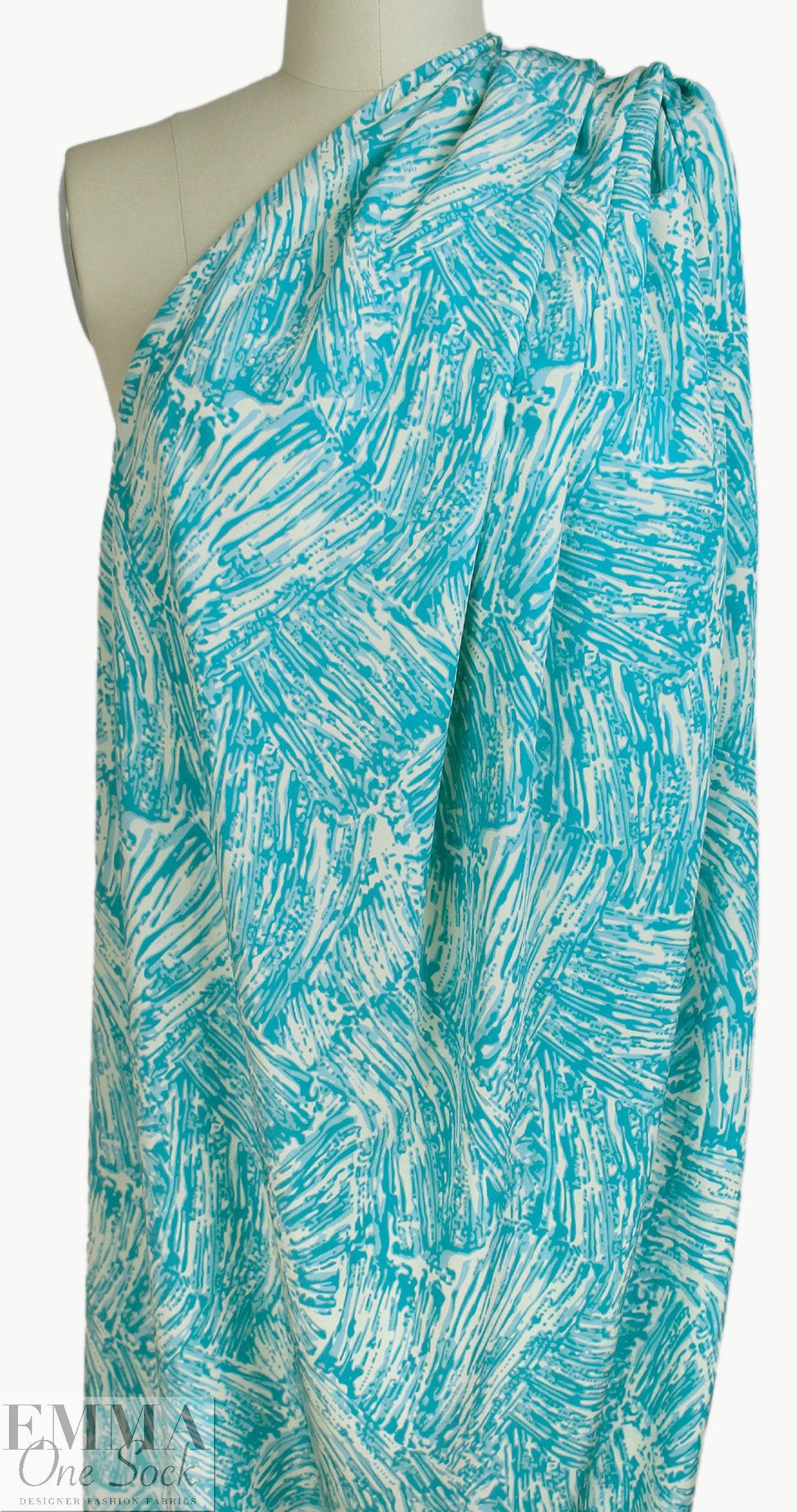 From Rache1 Comey, this is a beautiful silk crepe woven, lightweight yet opaque with a soft and floaty drape. The "abstract shadow hatch" print (8.75" repeat) features sky, light blue and alabaster (PANTONE 11-0107, 14-4313, 16-4519). It is perfect for a blouse, top, tunic, etc. Please test first if you wish to hand wash and hang to dry, or dry clean.