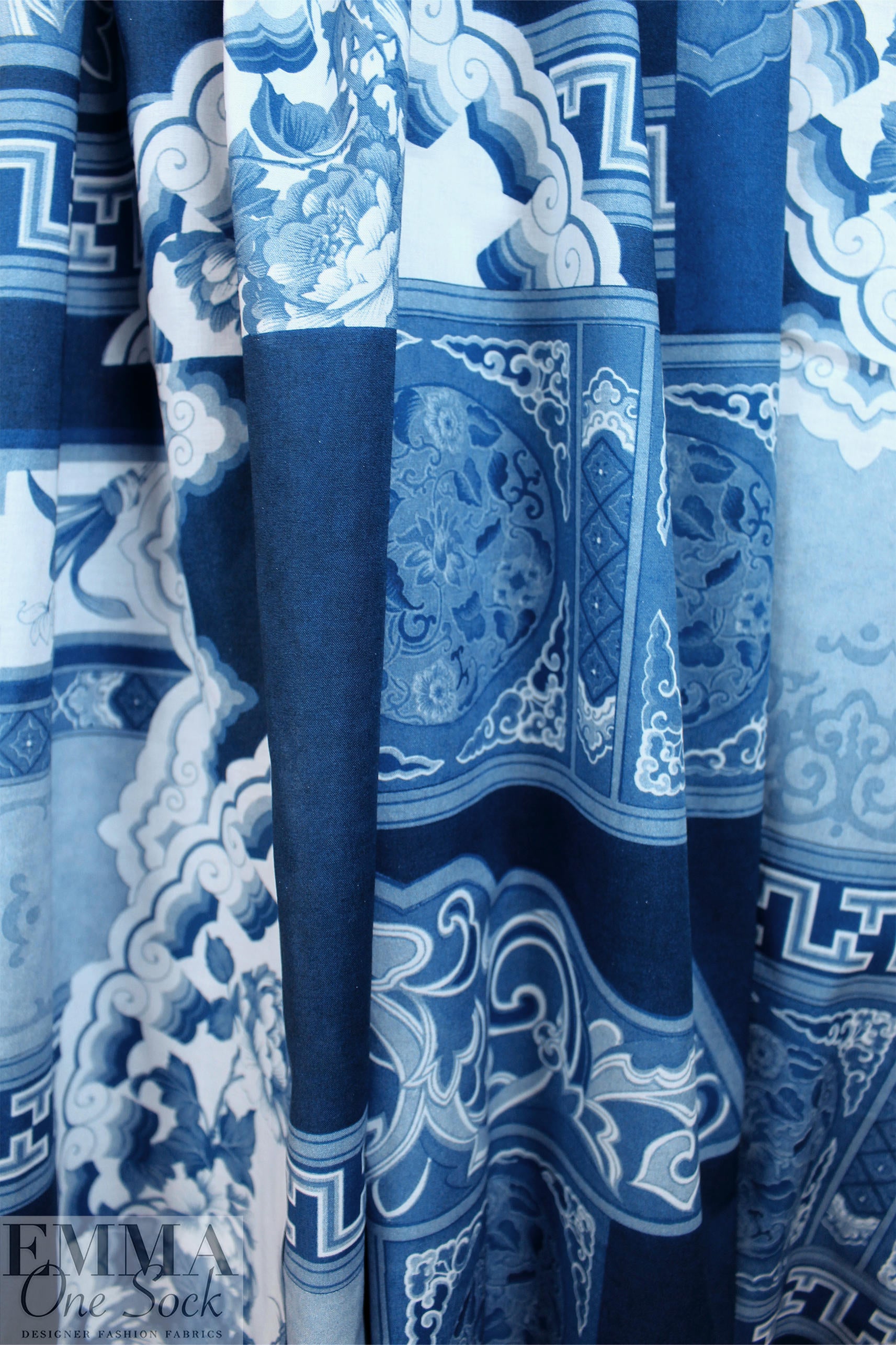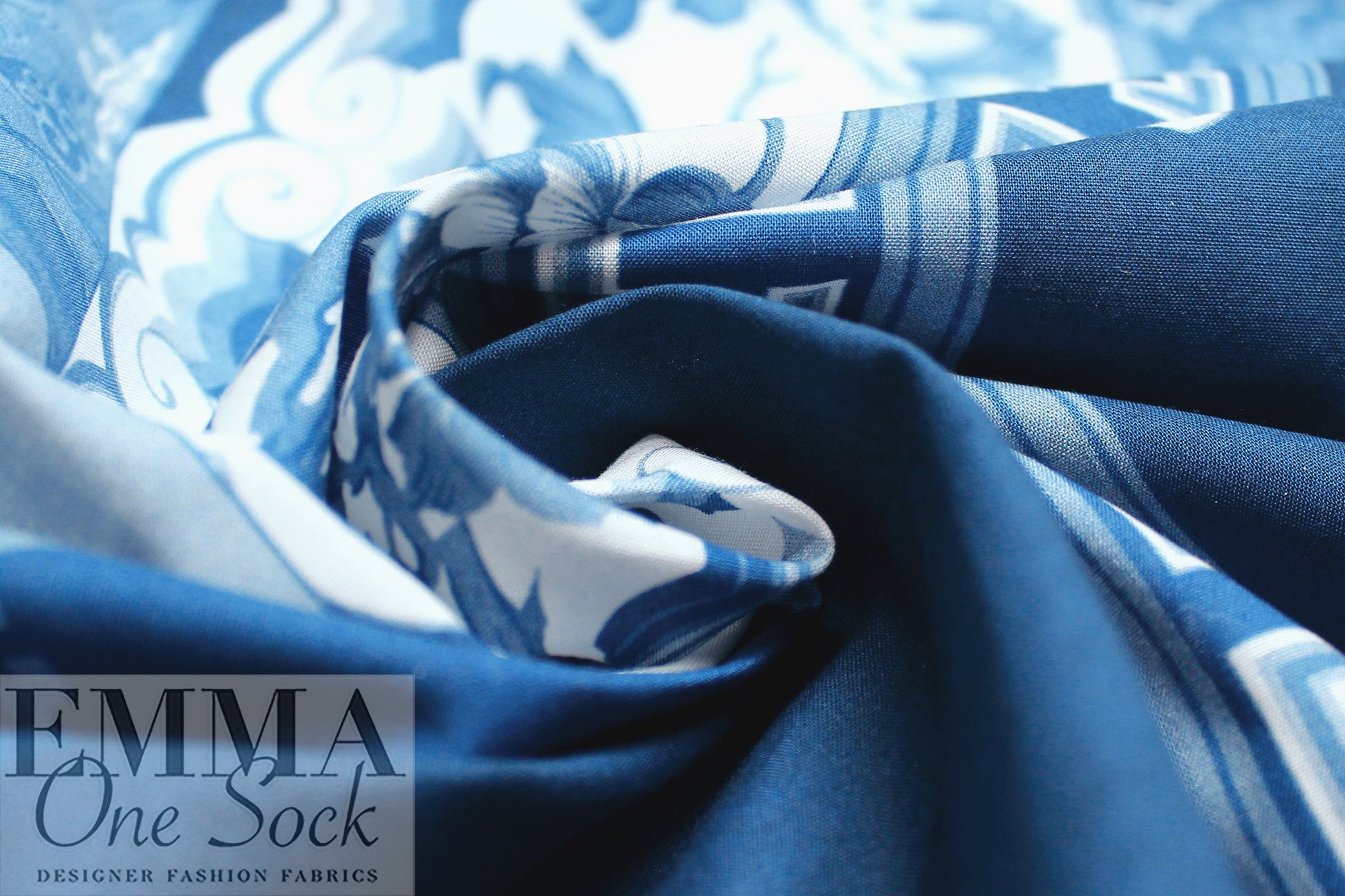 Rache1 Comey 'decoflora blue' cotton shirting