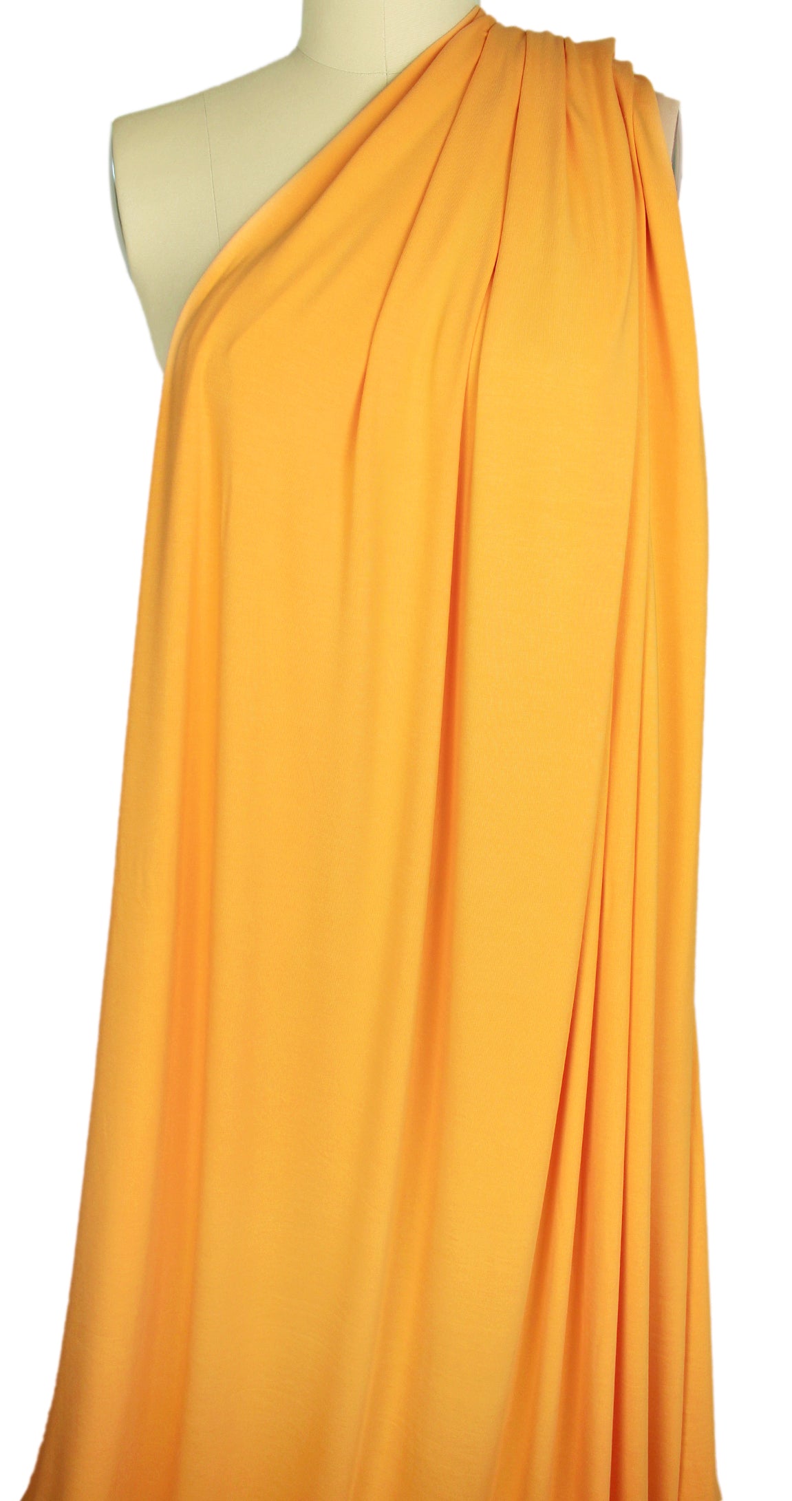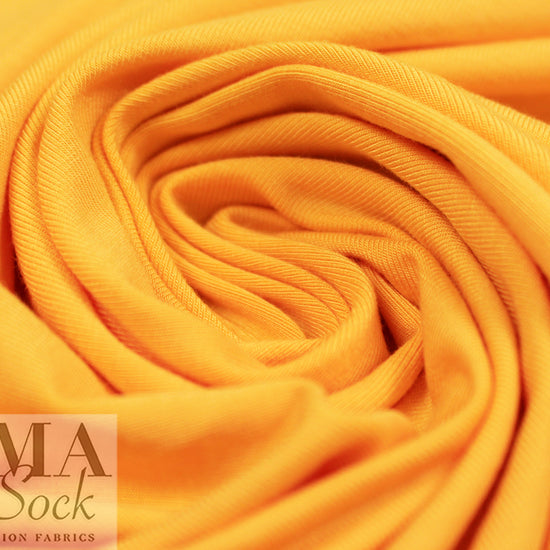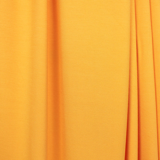 A beautiful 250 GSM rayon de bamboo/spandex single knit jersey in buttercup (PANTONE 13-0859 is close), Oeko-Tex certified for non-toxic chemicals or dyes. It is lightweight and opaque with beautiful drape. Rayon de bamboo/spandex is cool, comfortable, soft and smooth, and the 250 GSM weight is fabulous for trendy tops and tees, yoga wear, flowy skirt or dress, etc. It has about 50% stretch in both directions with great recovery. Machine wash gentle, hang to dry. It is perfectly comparable to our standard 11 oz. jersey, which is being phased out.