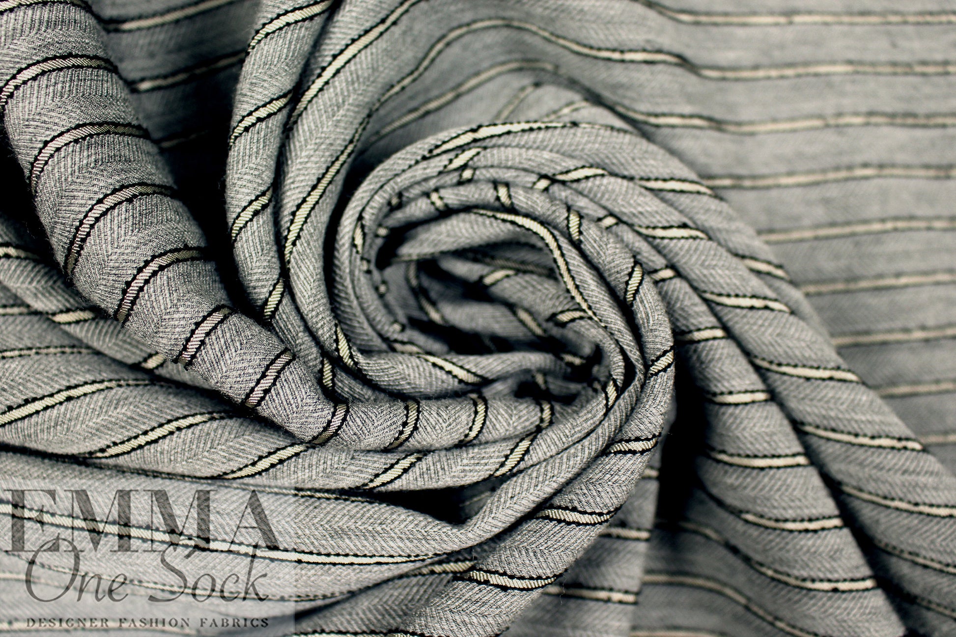 designer herringbone stripe yarn-dye woven - pewter/silver
