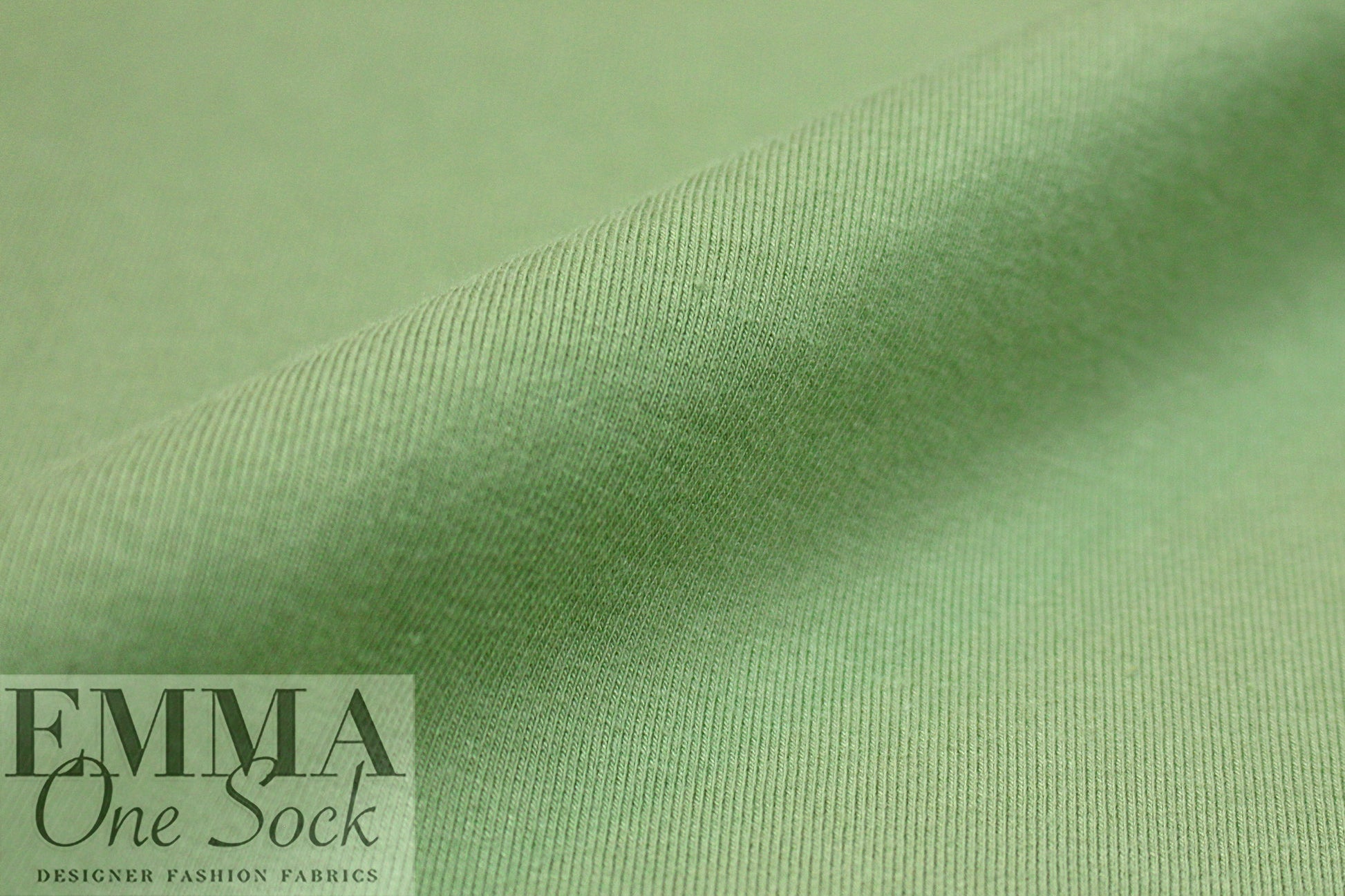 This is a wonderful fleece-backed, organic fiber sweatshirt knit, with a blend of bamboo rayon and organic cotton. It is medium weight with body in the drape and about 10% widthwise, 20% lengthwise stretch (so you may want to lay your garment across the grain). The right side is a plain, flat knit while the reverse has a fleecy, brushed, super soft texture. The color is pistachio (PANTONE 15-6316). This is a casual gem that is perfect for hoodies, casual jackets, cardigans, sweatpants, kids clothing, bathrobe, etc. Manufacturer recommends machine wash and hang to dry, but please test first, and wash separately when you pre-wash.