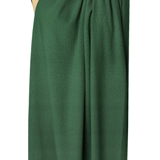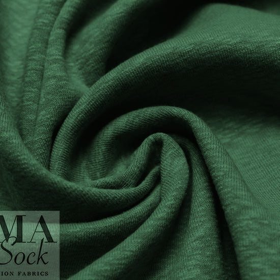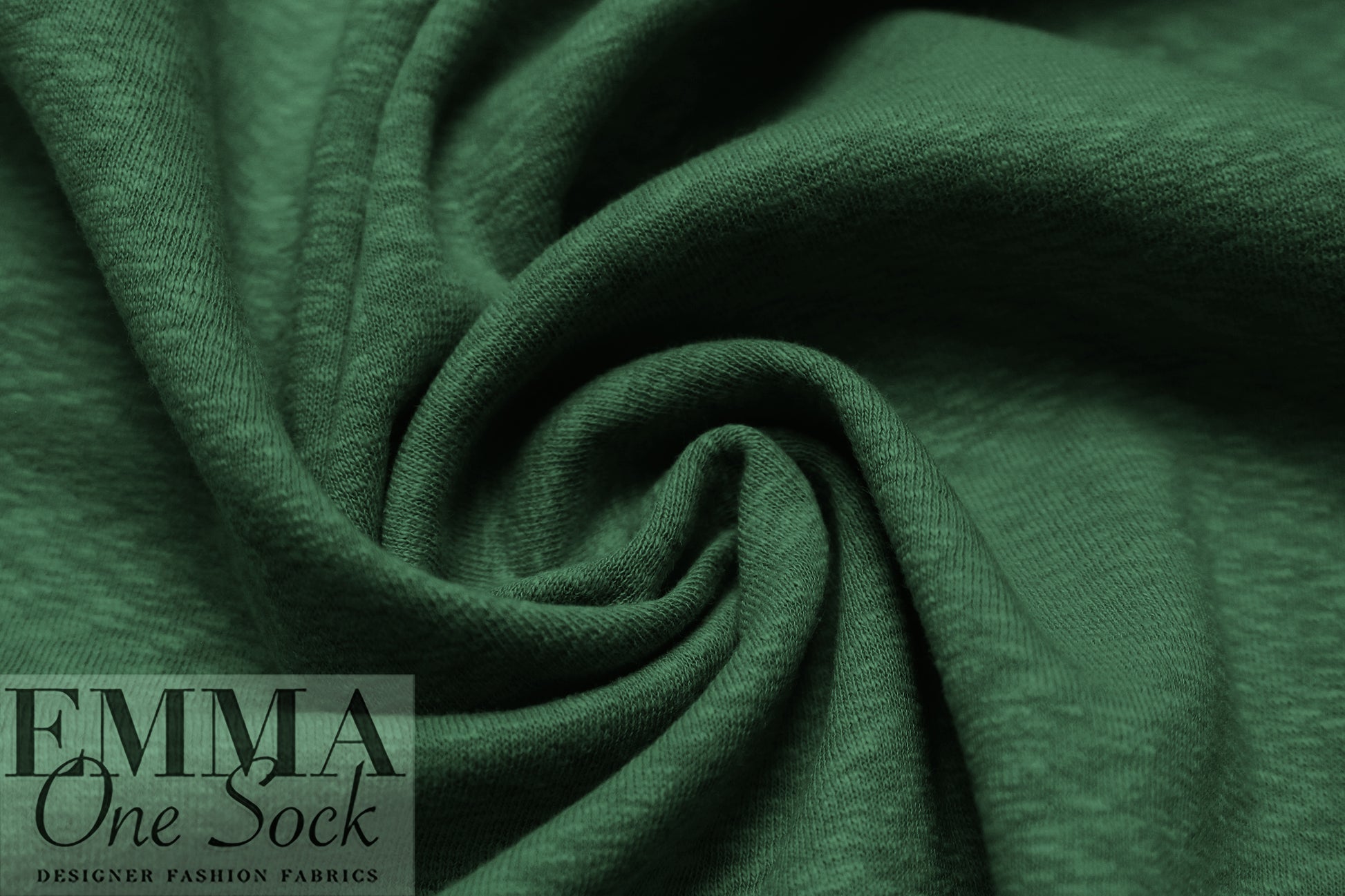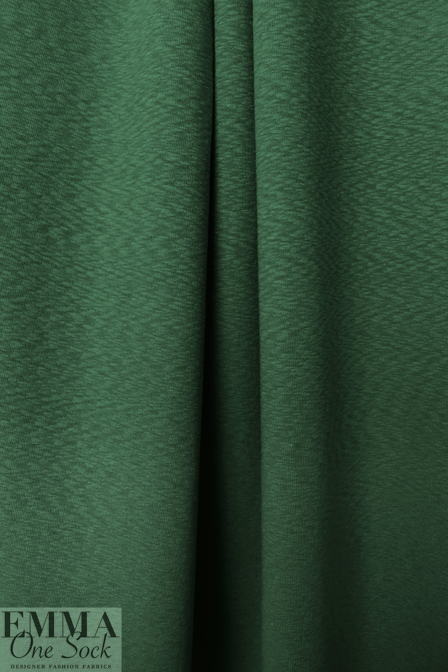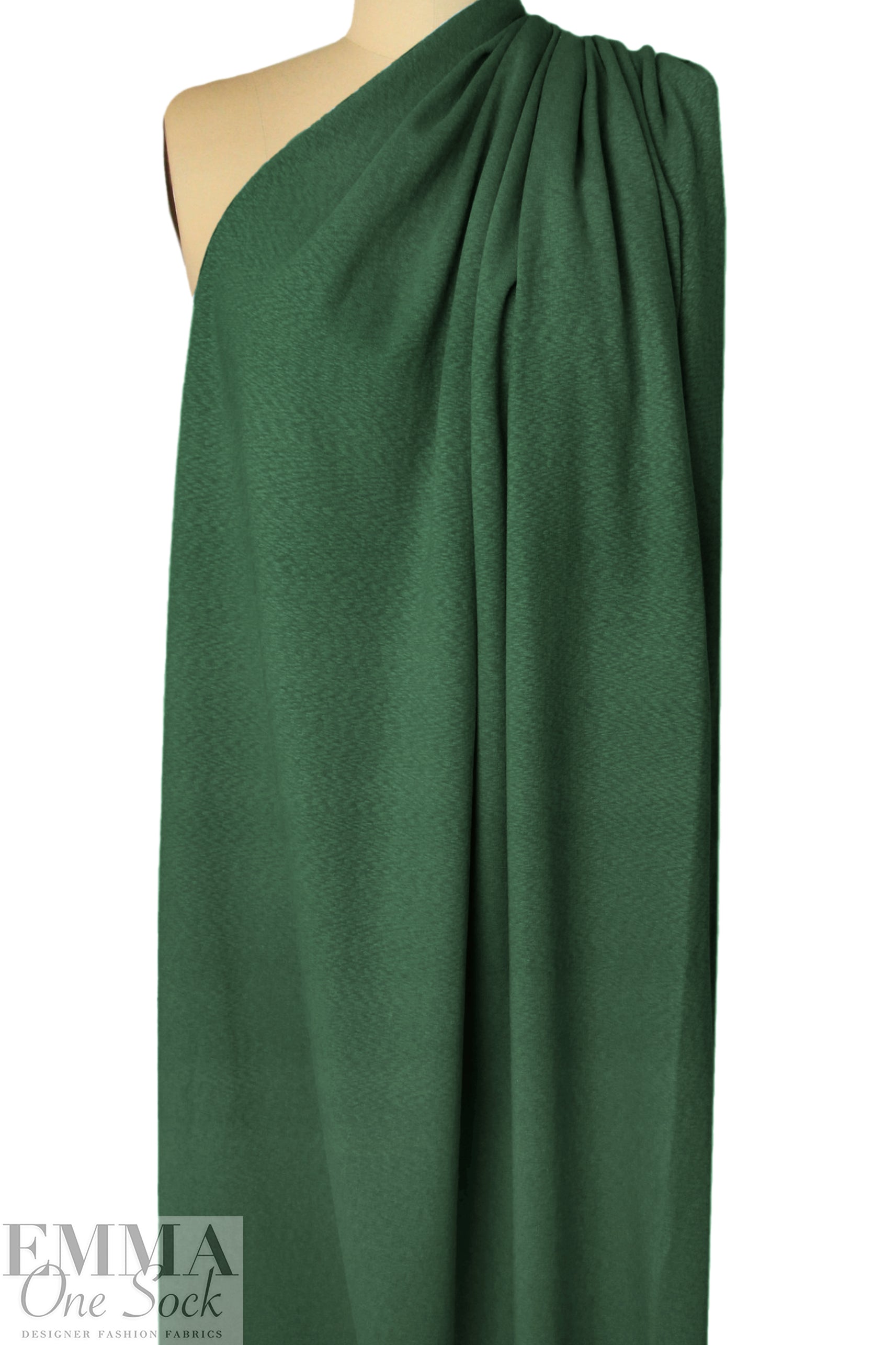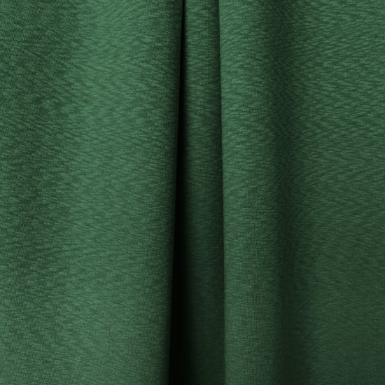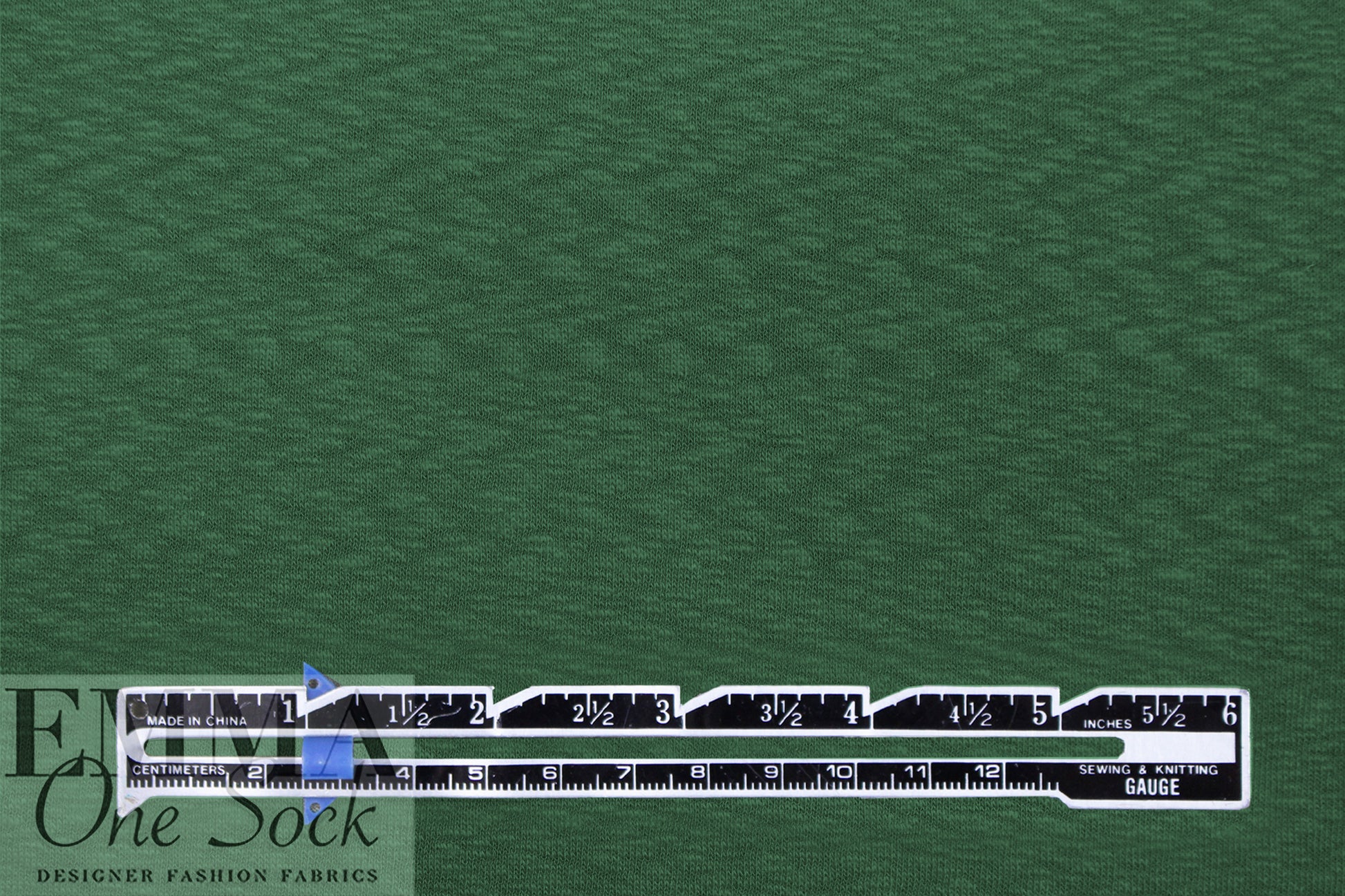 From a wonderful supplier of organic fabrics, this beauty is an organic cotton/elastane interlock sweater knit with a lovely "flamé stitch" jacquard design. Produced in Turkey for a Danish company, the fabric is Oeko-Tex and GOTS certified, assuring organic fibers and non-toxic chemicals and dyes. It is medium-light weight and opaque with about 30% widthwise and 10% lengthwise stretch and good recovery. It has a soft drape with some body, and the color is a pine green (PANTONE 19-5513 is close) with a matte finish. The flame' texture is visible on the face, and the reverse is a plain knit stitch (wonderful for contrast sections!). Perfect for a cardigan, pullover, sweater dress, knit top, etc. Hand or machine wash cool, gentle, and lay flat to dry. Do not dry clean, do not tumble dry. Note the wide width!