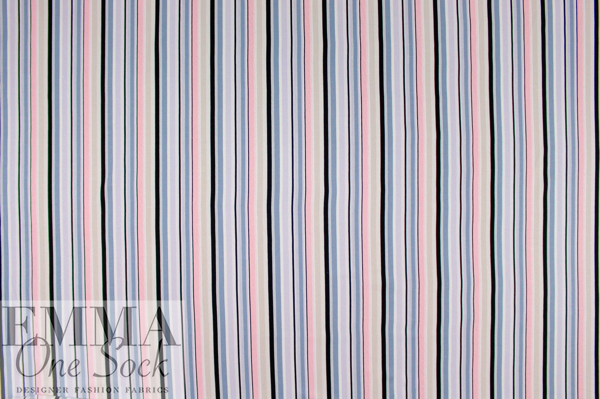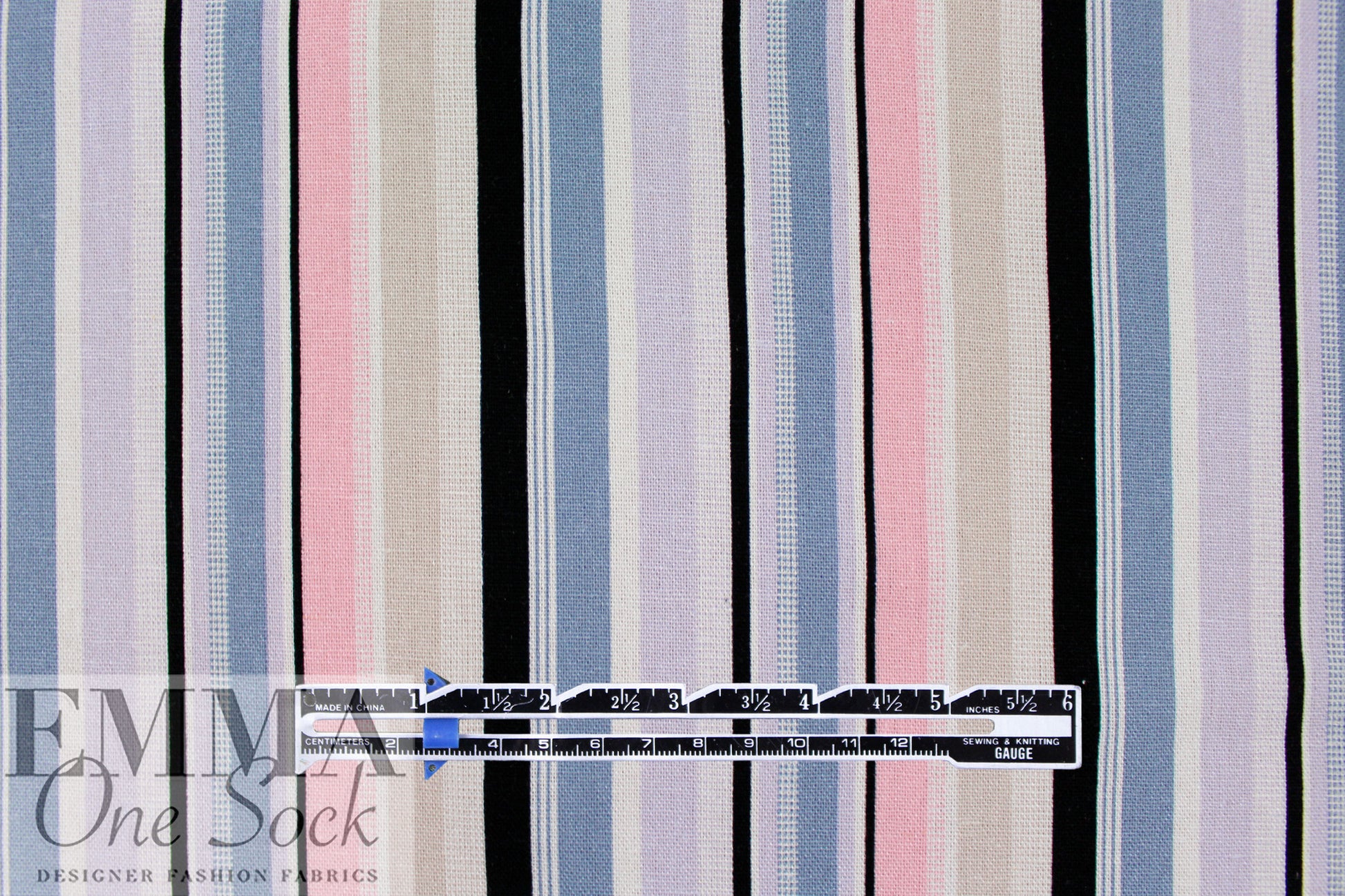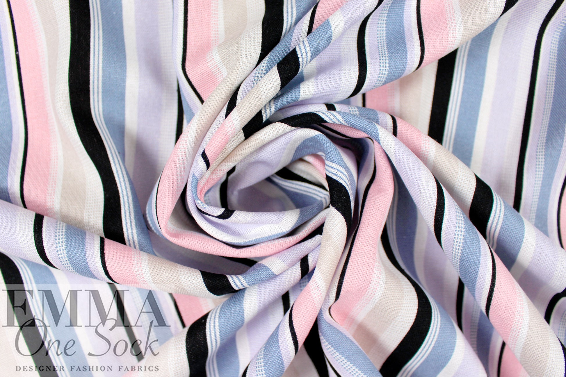 This is a fabulous rayon/linen woven with a pattern of printed stripes in a 4.5" horizontal repeat. It is lightweight yet opaque with a soft drape that has a bit of body. While the weave is visible, giving it a linen look, the hand is smooth and soft. The refreshing colors include light denim, peachy pink, black, soft white, light khaki and pale lavender (PANTONE 16-3919, 13-2005, 14-3710, etc.). Perfect for breezy separates and warmer weather garments: pants, tops, dresses, skirts, overshirts, etc. Hand or machine wash on warm or cold, hang to dry, or dry clean.