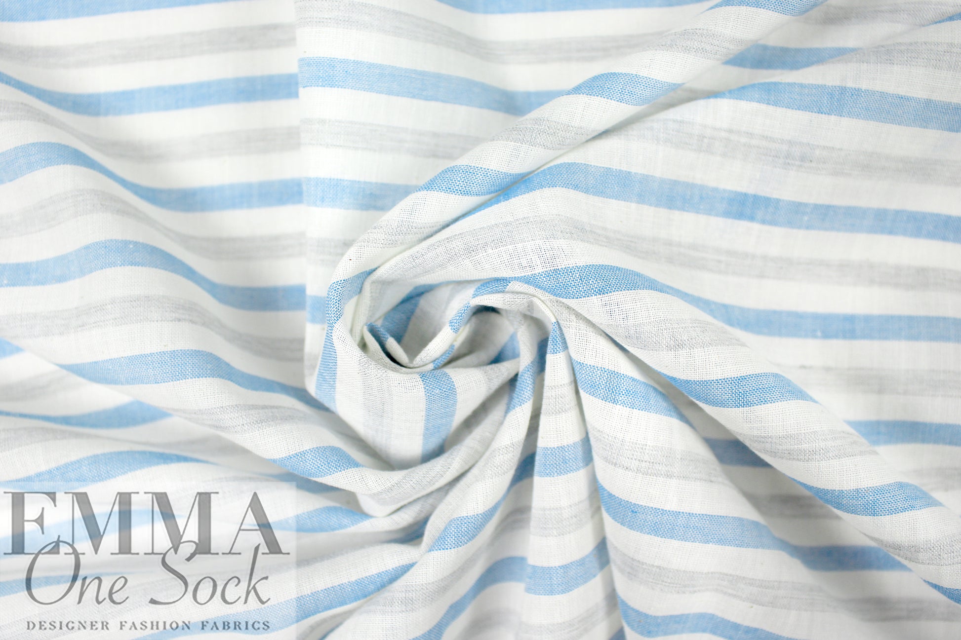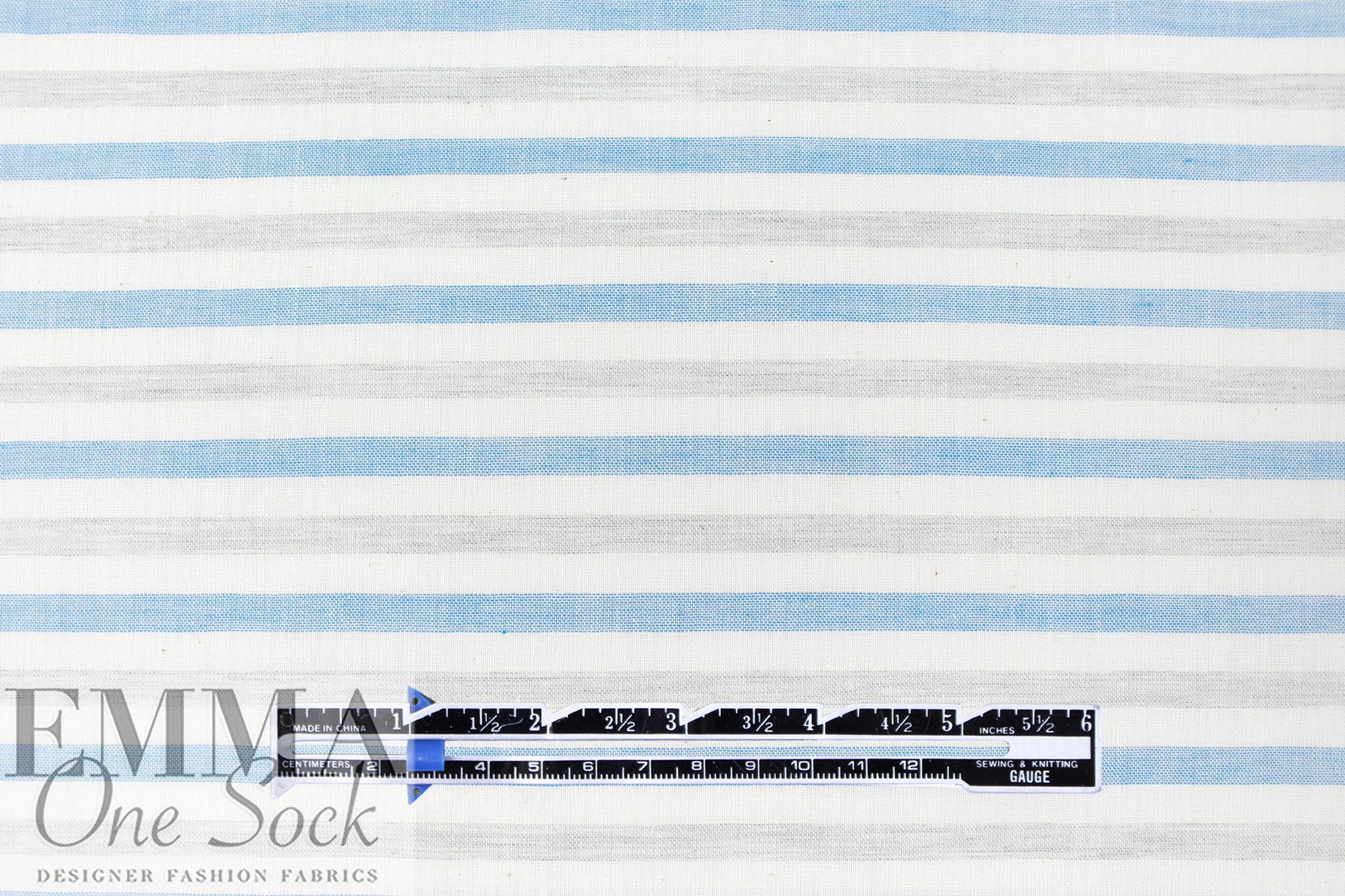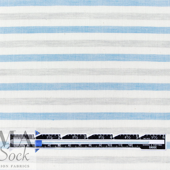 CA designer horizontal stripe all cotton voile - sky/gray/snow