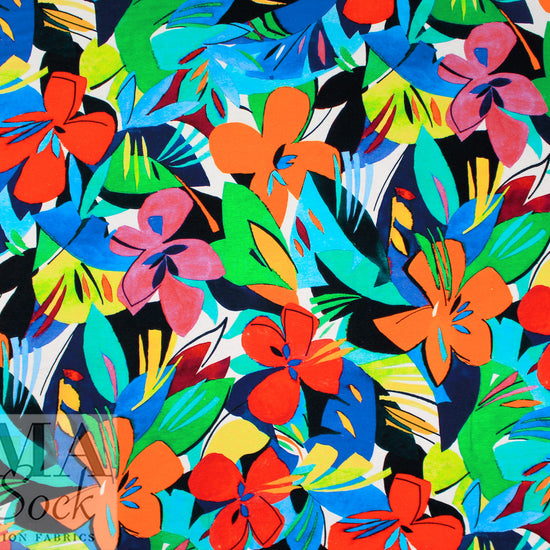 Italian 'joyful flowers' viscose/spandex knit