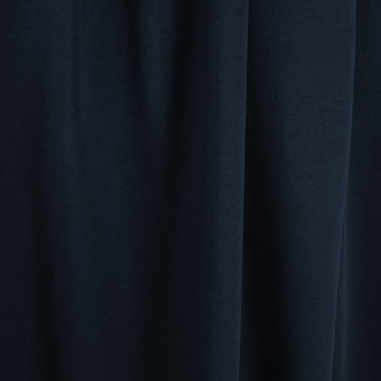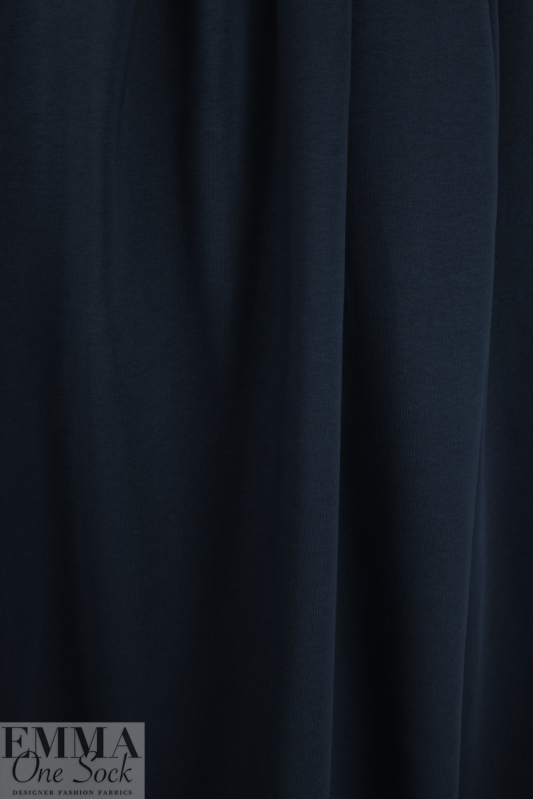 From a wonderful supplier of organic fabrics, this is an organic cotton sweatshirt knit with an extremely soft brushed fleece back. Produced in Turkey for the Danish company Mind the Maker, the fabric is Oeko-Tex and GOTS certified, assuring organic fibers and non-toxic chemicals and dyes. It is medium weight with some body in the drape and about 10% stretch widthwise. Note that this fabric is extra wide! The right side is a plain, flat knit while the reverse has the fleecy, soft texture. The color is indigo night (PANTONE 19-4010 but not quite as dark). This is a casual gem that is perfect for hoodies, casual jackets, cardigans, sweatpants, kids clothing, bathrobes, etc. Manufacturer recommends machine wash and hang to dry, but please test first, and wash separately when you pre-wash.