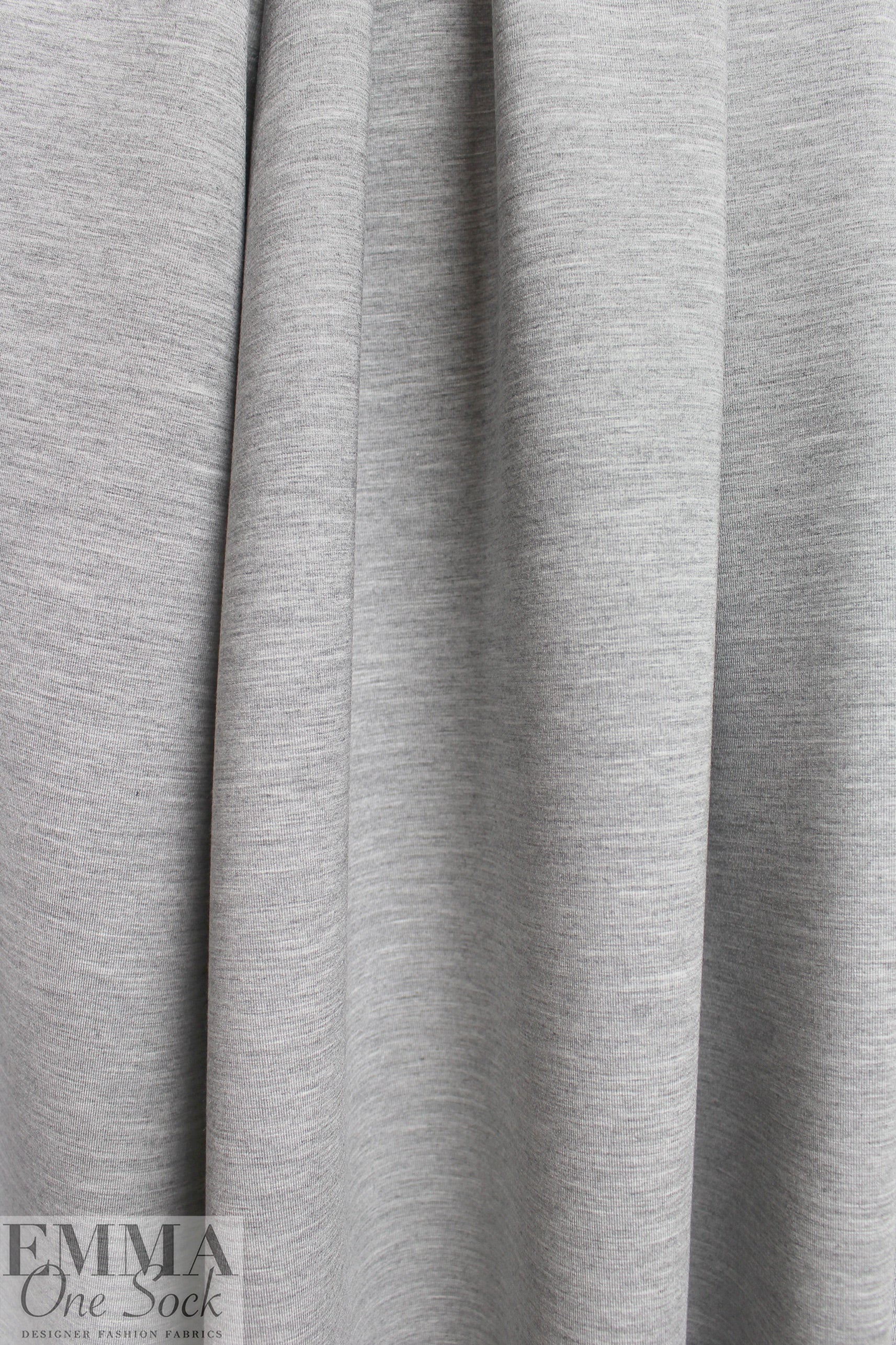 From France, this designer deadstock viscose blend ponte 4-way stretch knit is a fantastic basic! The color is a heathered ash grey (PANTONE 16-0000 is a bit darker, but close to the overall impression), and it is opaque, medium weight and super soft with a lovely drape that has some body. Excellent quality, and perfect for a knit blazer, knit dress, knit suiting, skinny pants, body-hugging tops, etc. 25% stretch in the width and length with great recovery. Hand or machine wash cool, hang to dry, please test first.