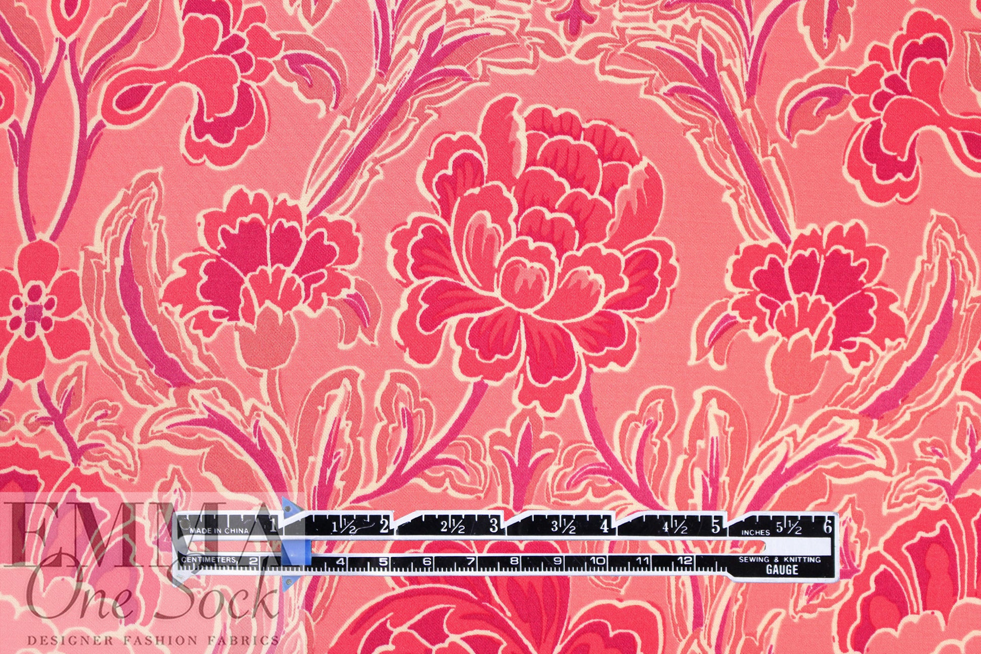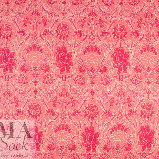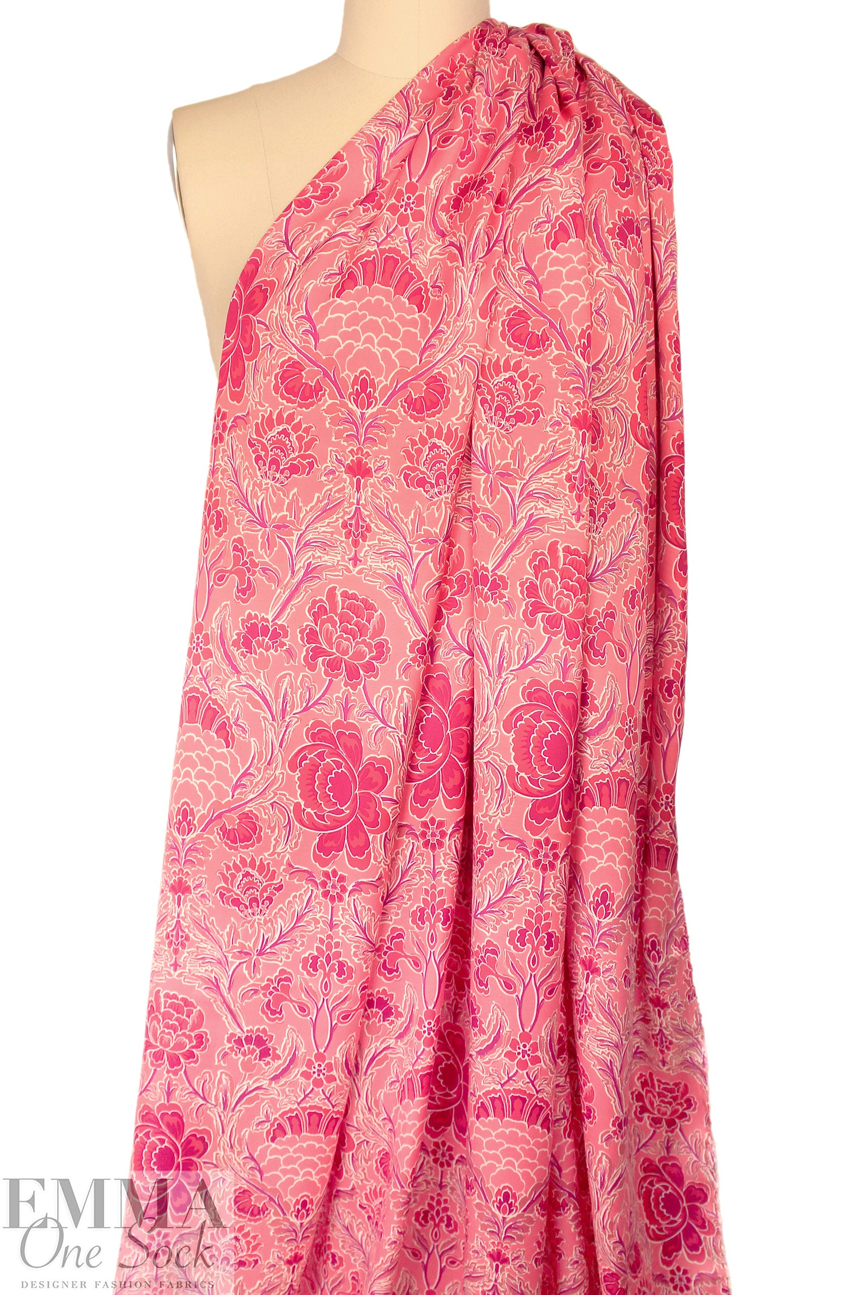 From Italy, comes this beautiful viscose satin woven with a lustrous and smooth surface, using a new and more sustainable iteration of viscose called Ecovero. This beauty is light weight and opaque with a floaty, soft drape. The 'deco drama' floral scroll print (25.5" repeat) features strawberry pink, coral, dusty rose, plum and white (PANTONE 16-1731, 18-1651, 17-1512, etc.) . It is perfect for a shirt, blouse, tunic, top, lined dress or skirt, etc. It would also make a lovely lining for a tailored jacket or coat. Hand wash, hang to dry (please test first), or dry clean. EcoVero is a viscose fabric made from sustainably sourced, renewable resources and the end product is completely biodegradable. The overall environmental impact is so low that it has been awarded the prestigious EU Ecolabel. EcoVero performs exceptionally well for everyday wear as it is very soft, comfortable, breathable and durable with a lovely drape. A wonderful choice for your professional wardrobe as well, as this fabric retains vivid color, does not pill and can mimic silk. EcoVero is an exciting development in eco-friendly fashion.
