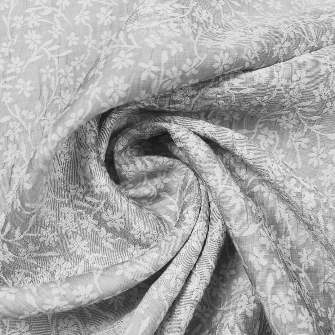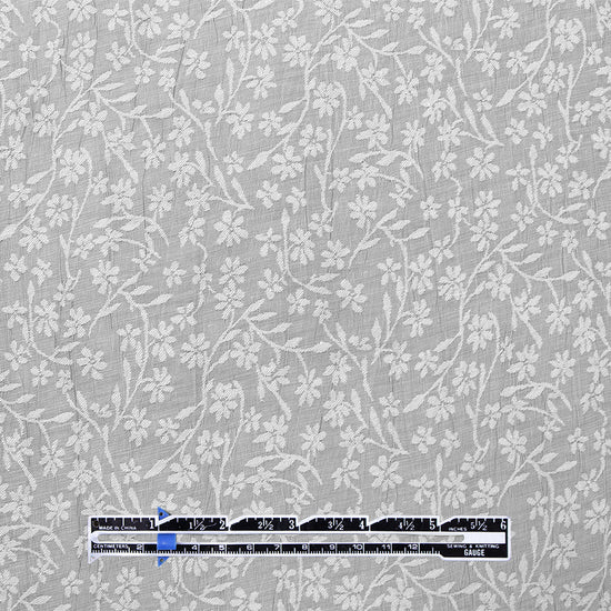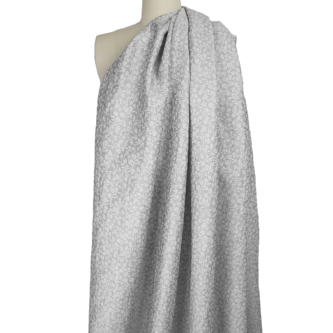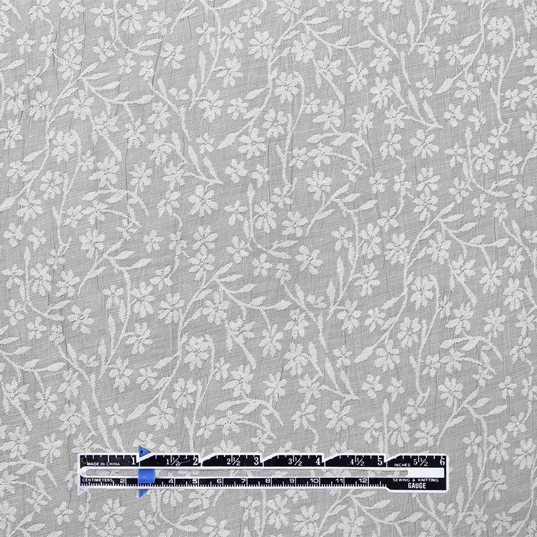 Italian linen blend crinkle texture floral jacquard - cool gray