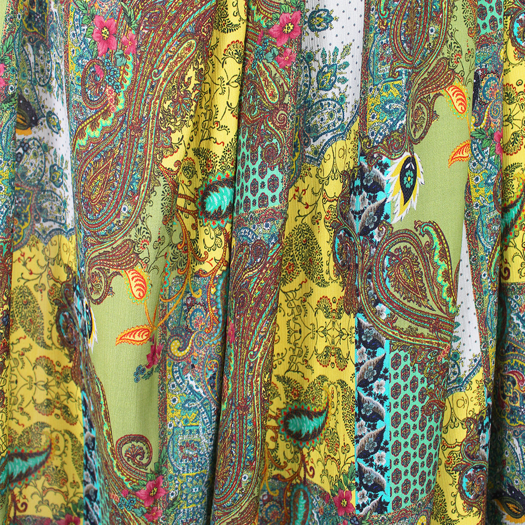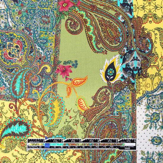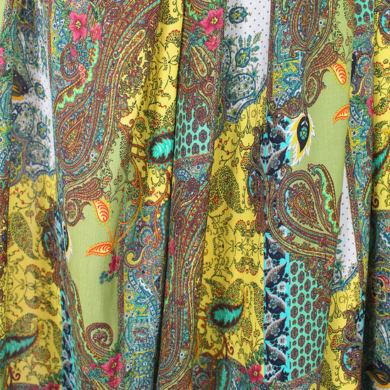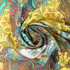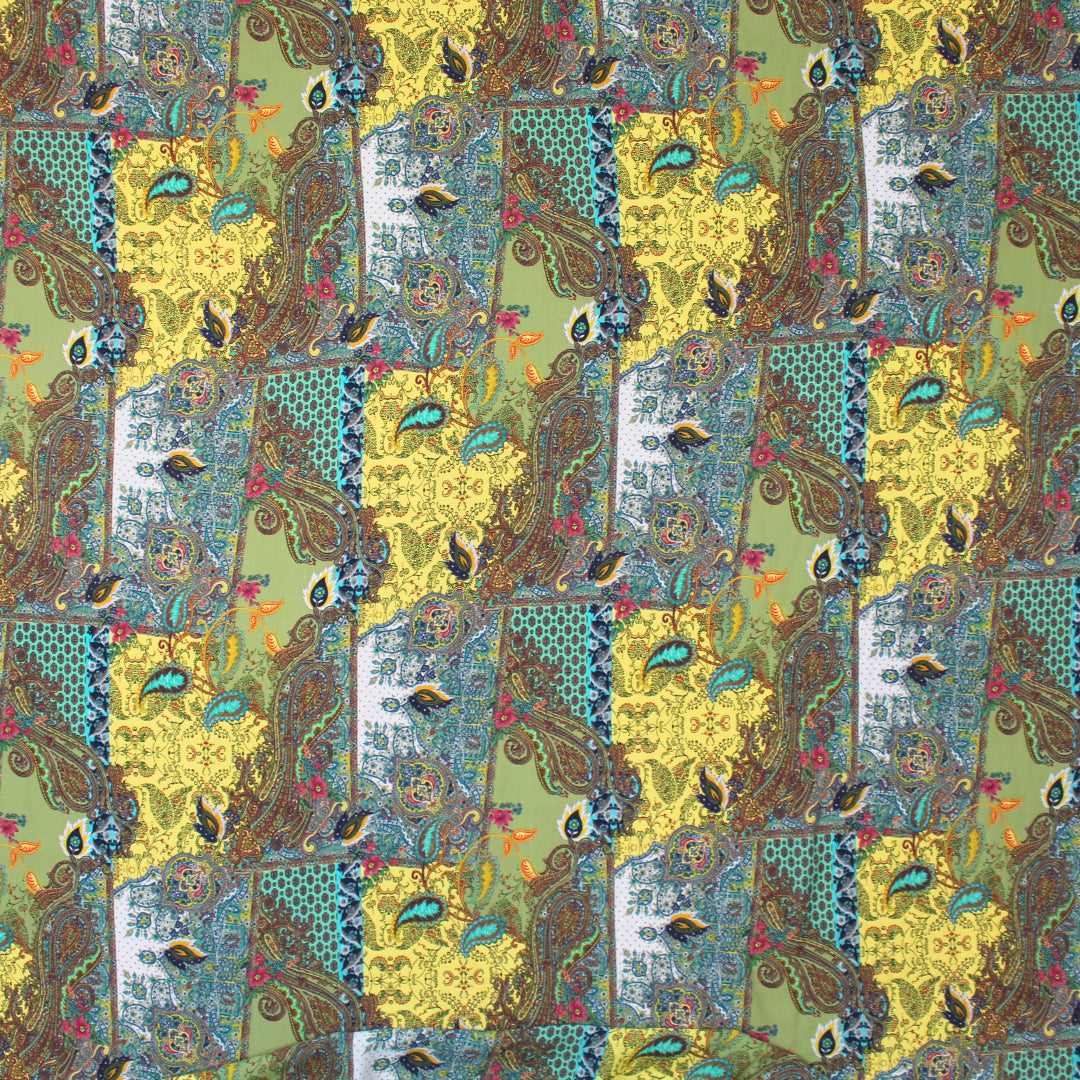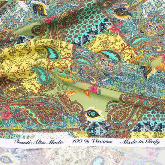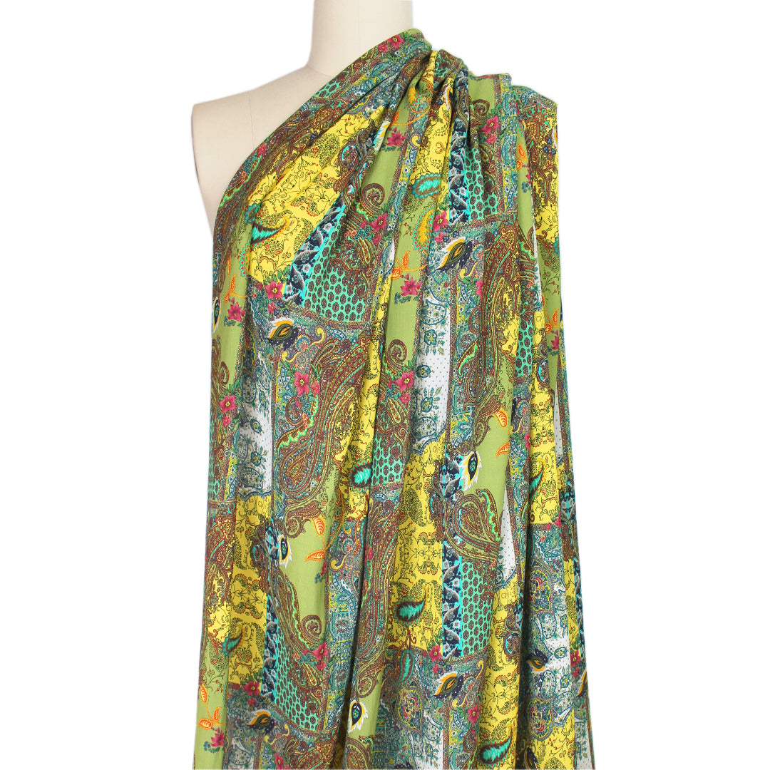 Italian 'paisley reprise' viscose micro-plisse' - maize/sage