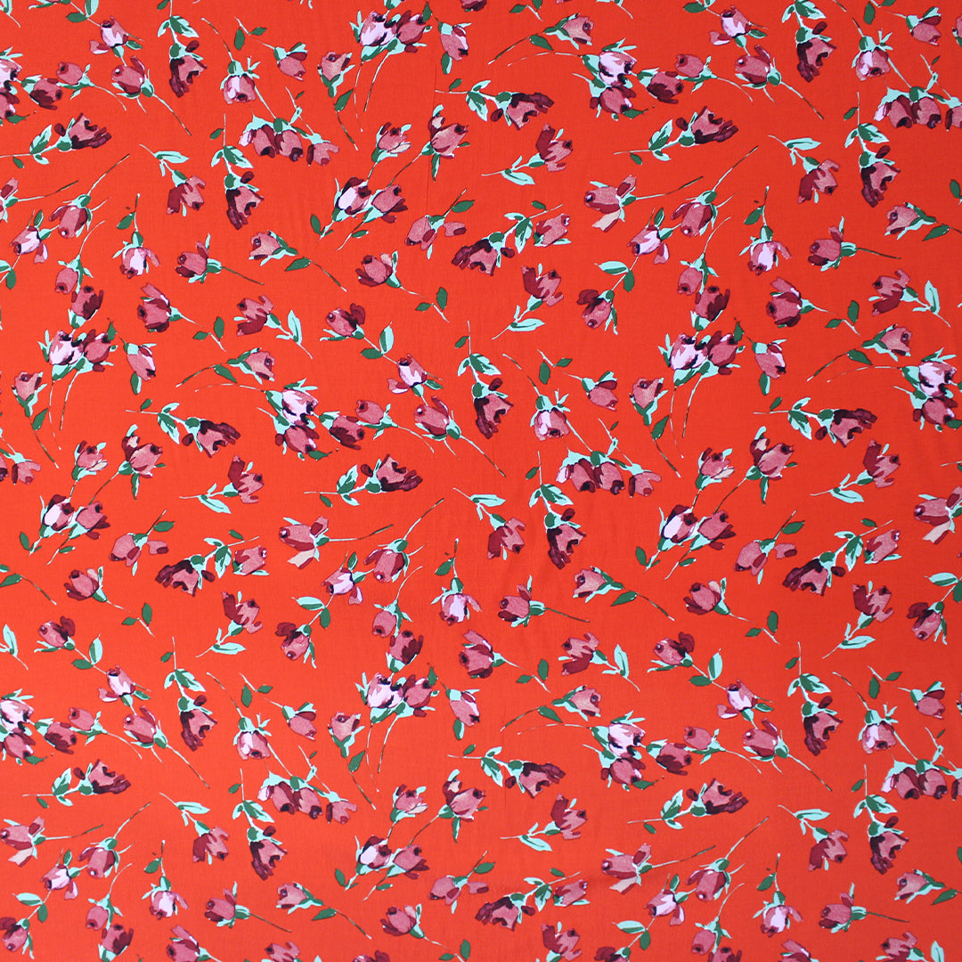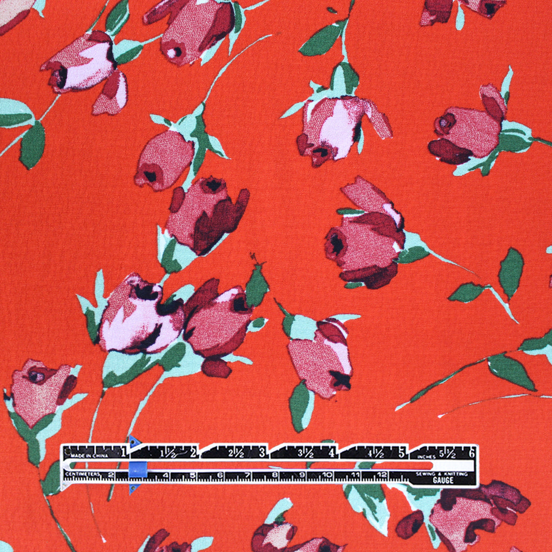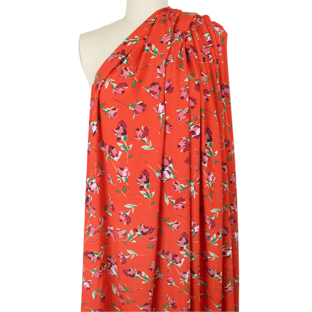 Italian 'red hot roses' viscose crepe woven