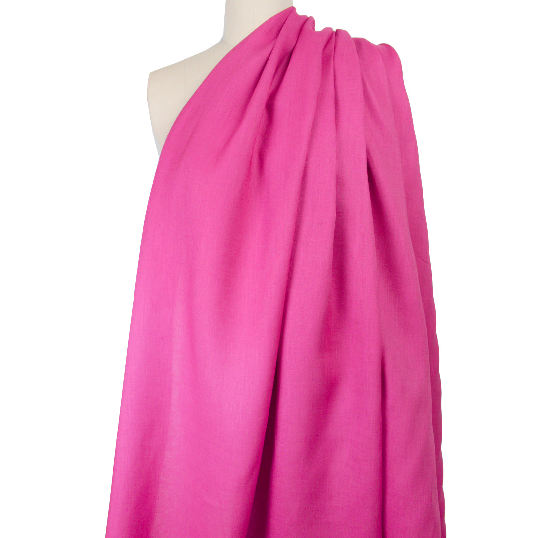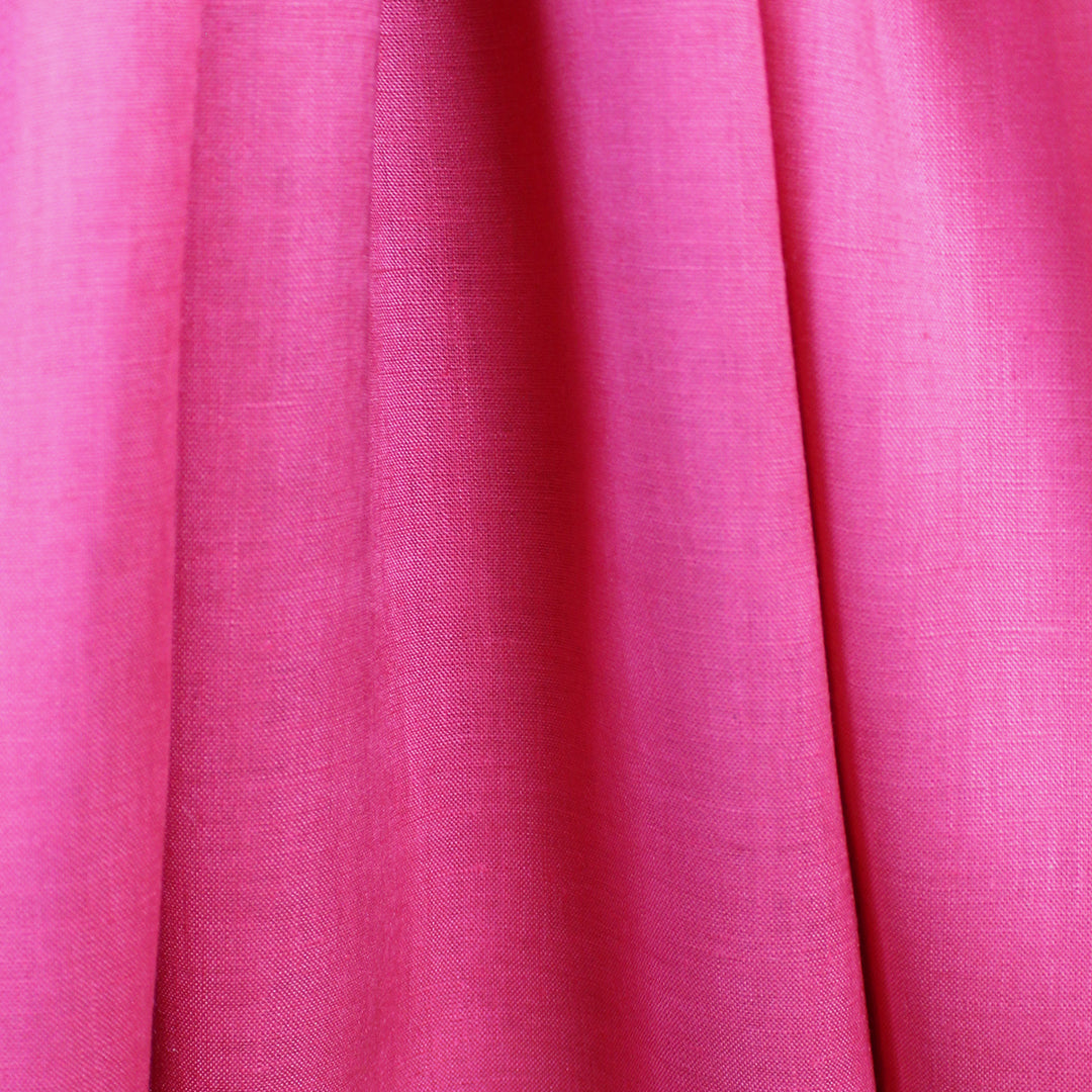 This beautiful quality European linen in a vivid hot pink (PANTONE 17-2230) is a warm weather favorite! It is a lighter mid-weight woven with some crispness in the drape. Semi-opaque, it is perfect for an overshirt, dress, tunic, pants, skirt, airy separates, etc. Some styles may need lining. Dry clean or test first if you want to try hand or machine washing. Lay flat or hang to dry.