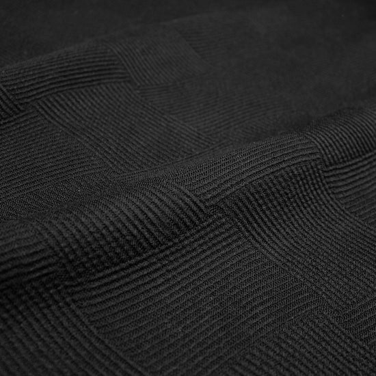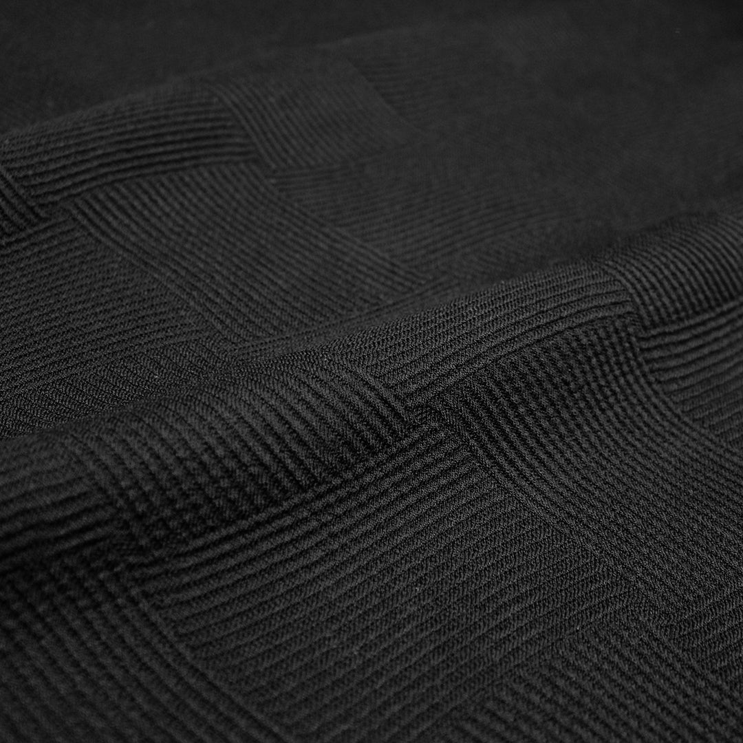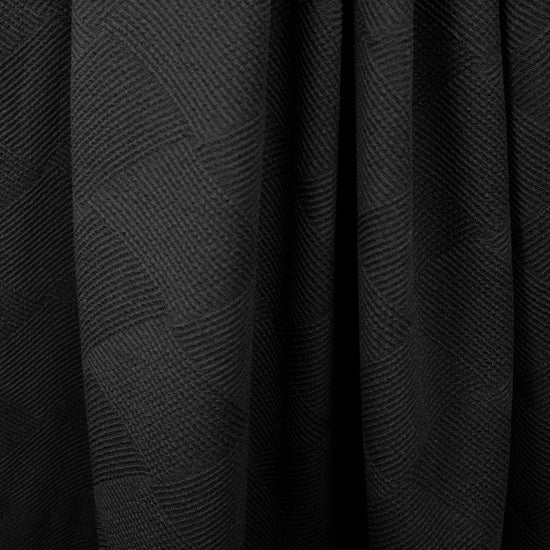 From French designer deadstock, this is a wonderful quality textured novelty knit. It is a substantial, stable and opaque doubleknit with body in the drape and about 10% stretch. The criss-cross basketweave design (3.375" repeat) is knitted in classic black, forming a 3-dimensional texture on the face with a plain knit stitch on the reverse. Note that this is knitted in a tube, so the dimensions are taken with the fabric doubled over as it is sold. You just cut it open at the fold (we'll include a sticker showing which side to cut, to make sure you're cutting it open on the correct fold, and not in the middle of the fabric!). It is perfect for a cardigan jacket, knit dress or skirt, knit suiting, etc. PLEASE TEST FIRST: Hand or machine wash cold, lay and flat to dry, or dry clean.
