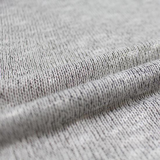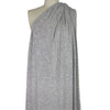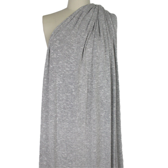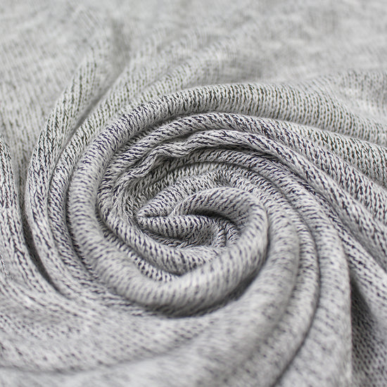 This is a wonderful and lightweight, semi-opaque variegated sweater knit from designer deadstock. It is SO soft with a buttery hand and drape. The yarn-dyed colors are black with light silvery gray, which blend together for a frosty gray overall impression (PANTONE 13-4108 is close). There is a slight sheen to the variegated highlights only. It has 20% stretch in each direction and is perfect for a drapey cardigan, a scarf, top, pullover, etc. A delightful basic for any time of year! Please test first if you wish to hand or machine wash, and lay flat to dry.