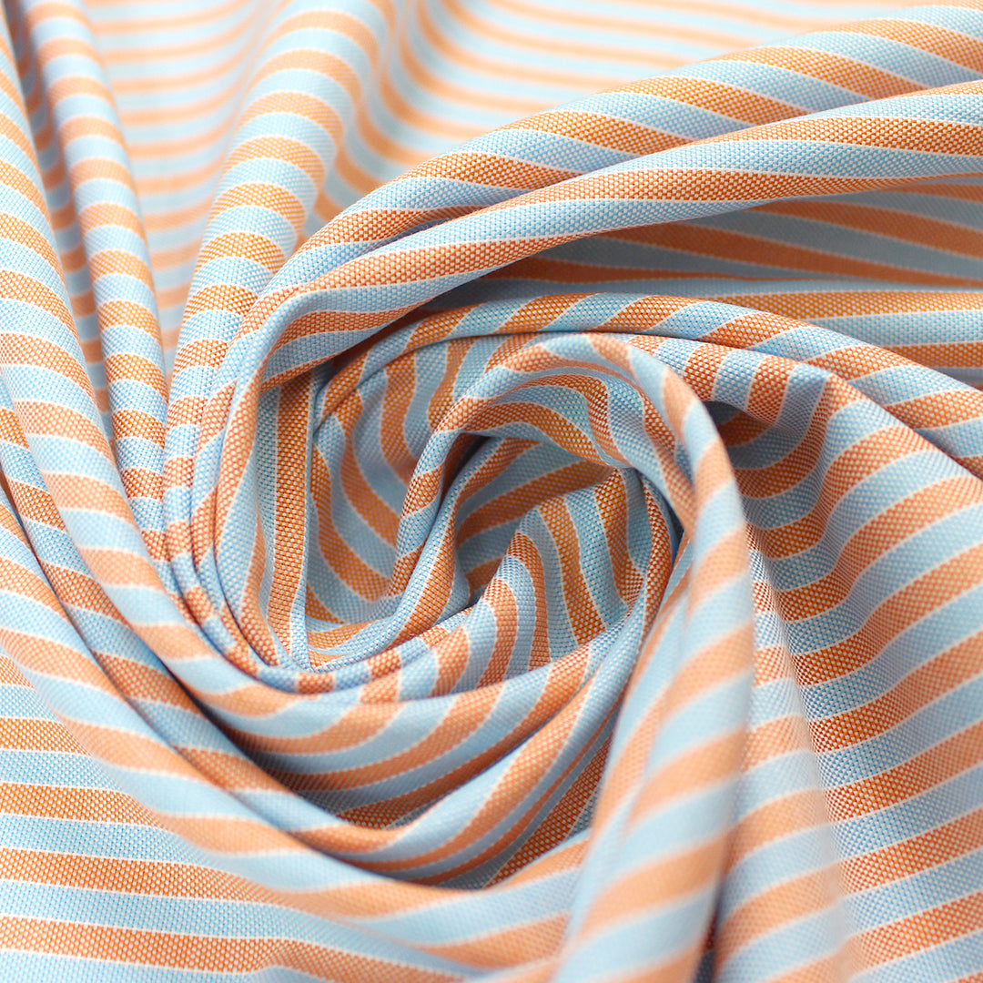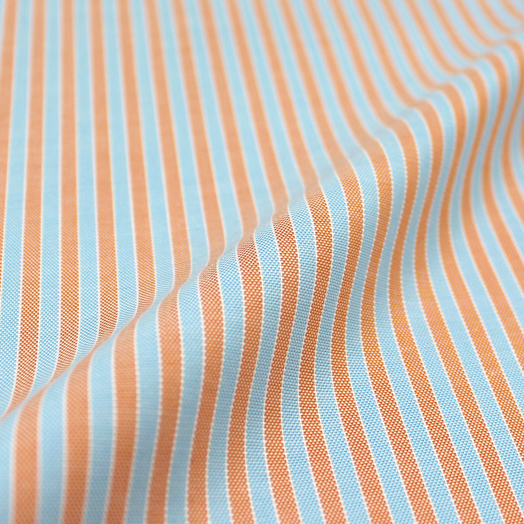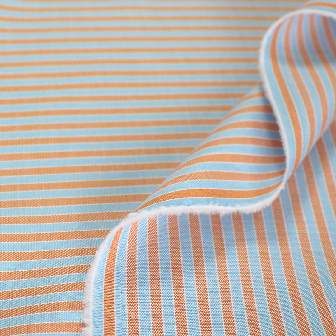 classic stripe lightweight cotton shirting - sky/coral 1.5 yds