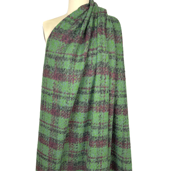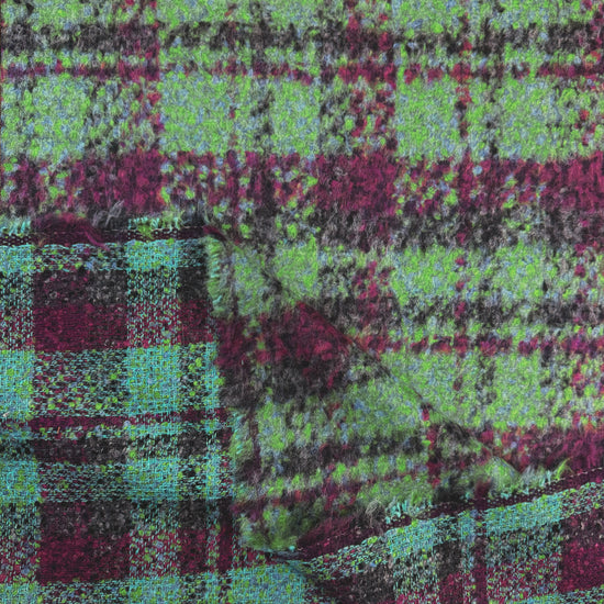 Italian 'plaid' wool/viscose blend coating - wasabi/berry
