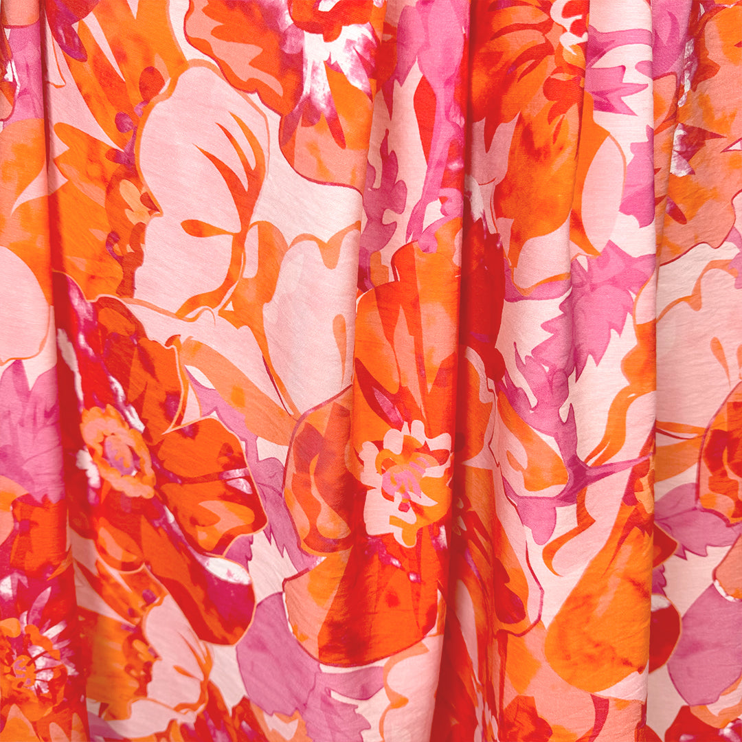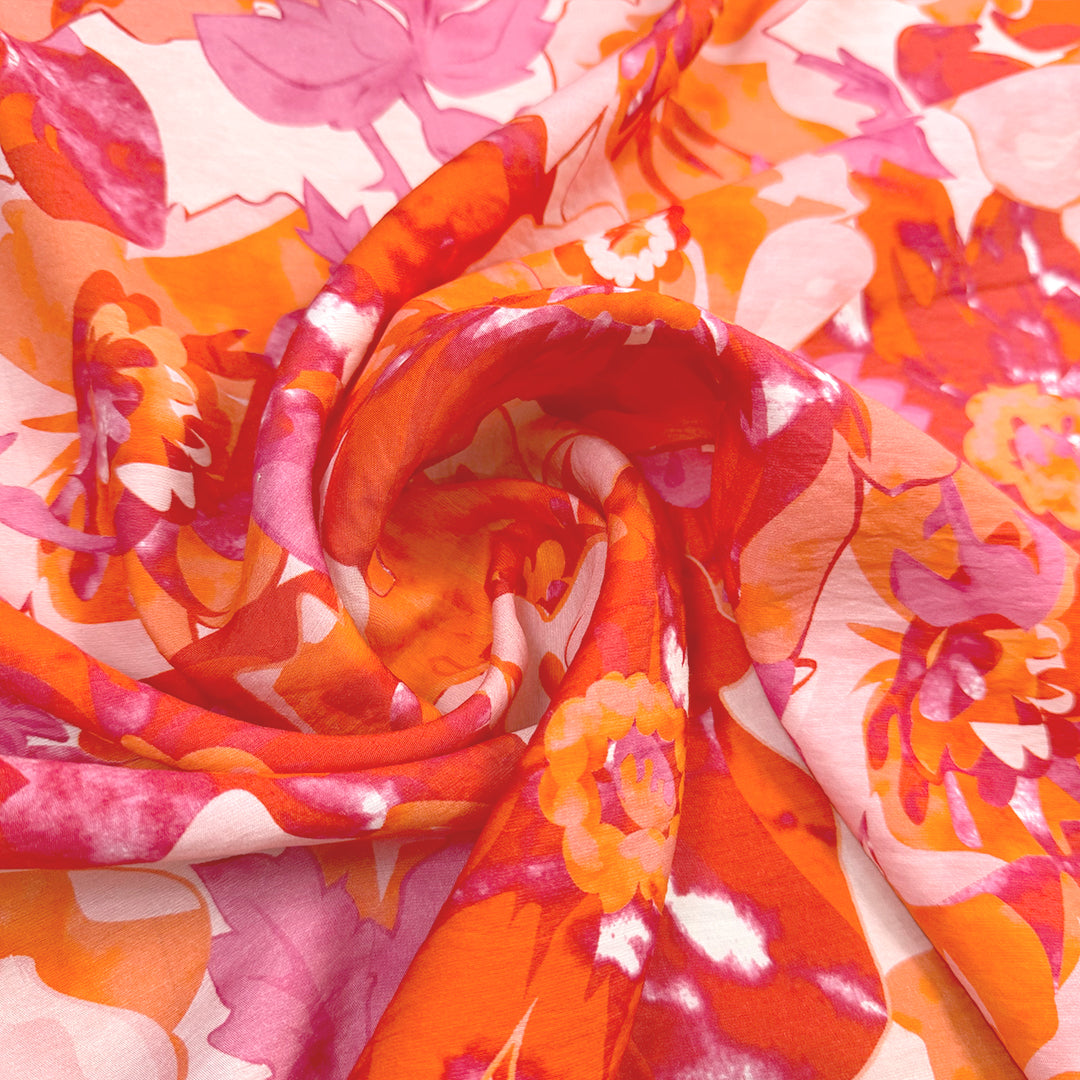 Italian 'brilliant floral' viscose blouse weight - blood orange/orchid