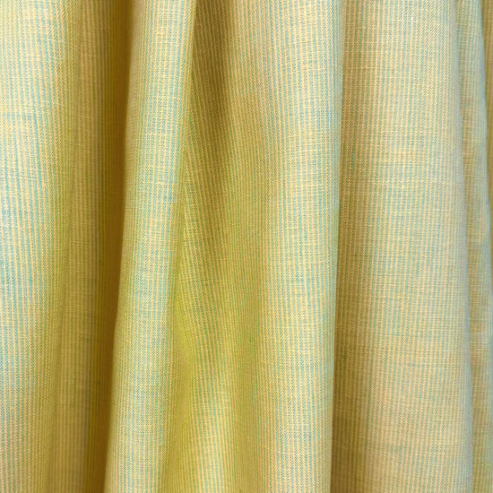 This is a beautiful quality European linen in a vertical, narrow yarn-dyed stripe weave. It features shades of lemon and pale lime for an overall impression of a limoncello color (PANTONE 13-0739 is close to the overall impression) and it looks the same on both sides. It is stable in both directions and is perfect for spring/summer/fall. A semi-opaque dress weight woven with some crispness in the drape, it is suitable for an overshirt, dress, tunic, pants, skirt, tailored lightweight jacket, airy summer separates, etc. Dry clean or test first if you want to try hand or machine washing. Lay flat or hang to dry.