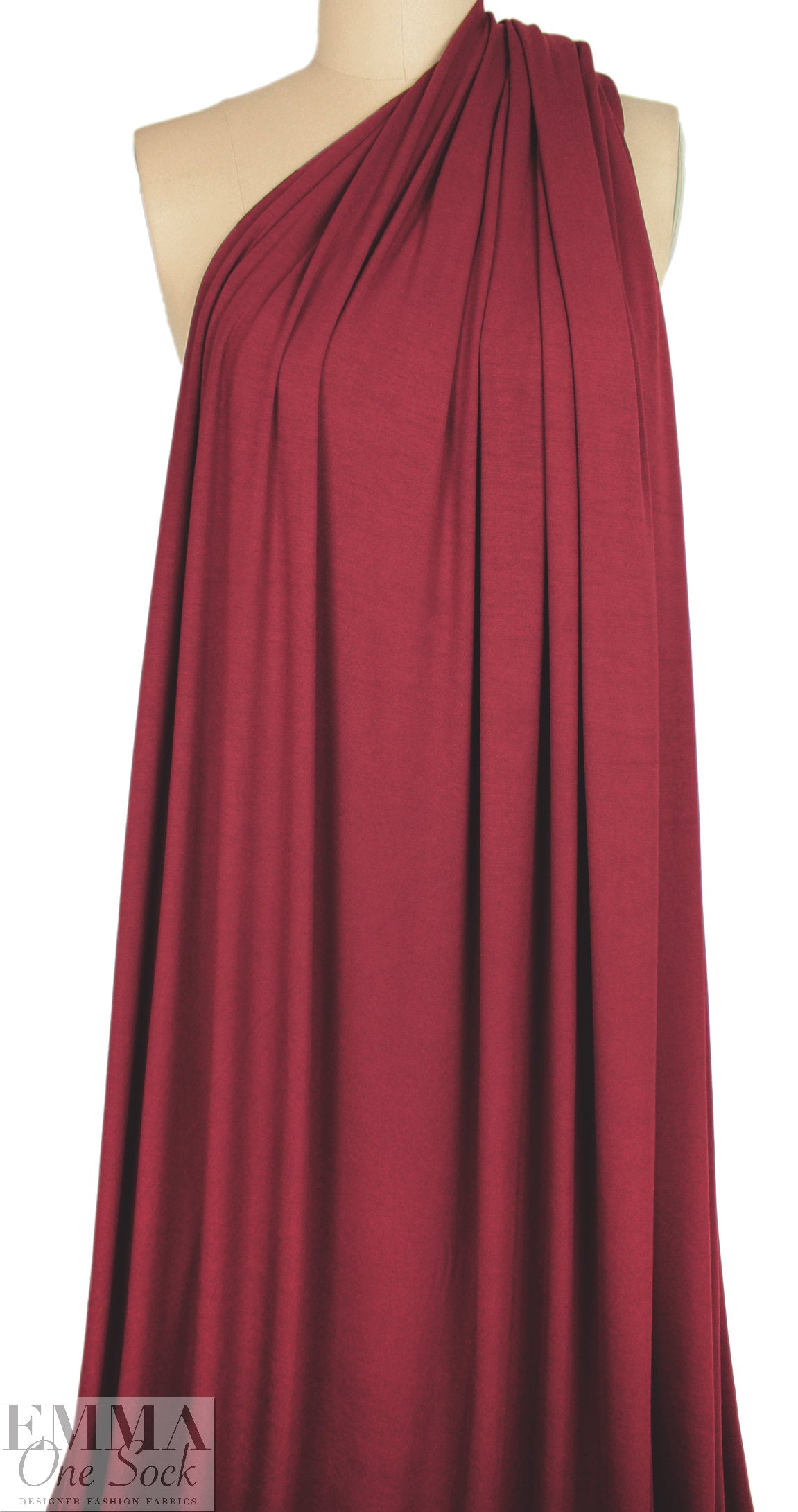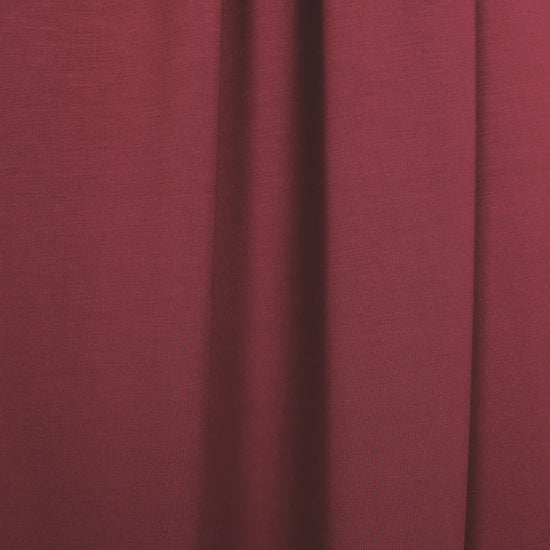 A beautiful 250 GSM rayon de bamboo/spandex single knit jersey in burgundy (PANTONE 19-1524 is close), Oeko-Tex certified for non-toxic chemicals or dyes. It is lightweight and opaque with beautiful drape. Rayon de bamboo/spandex is cool, comfortable, soft and smooth, and the 250 GSM weight is fabulous for trendy tops and tees, yoga wear, flowy skirt or dress, etc. It has about 50% stretch in both directions with great recovery. Machine wash gentle, hang to dry. It is perfectly comparable to our standard 11 oz. jersey, which is being phased out. 1.25 yds.