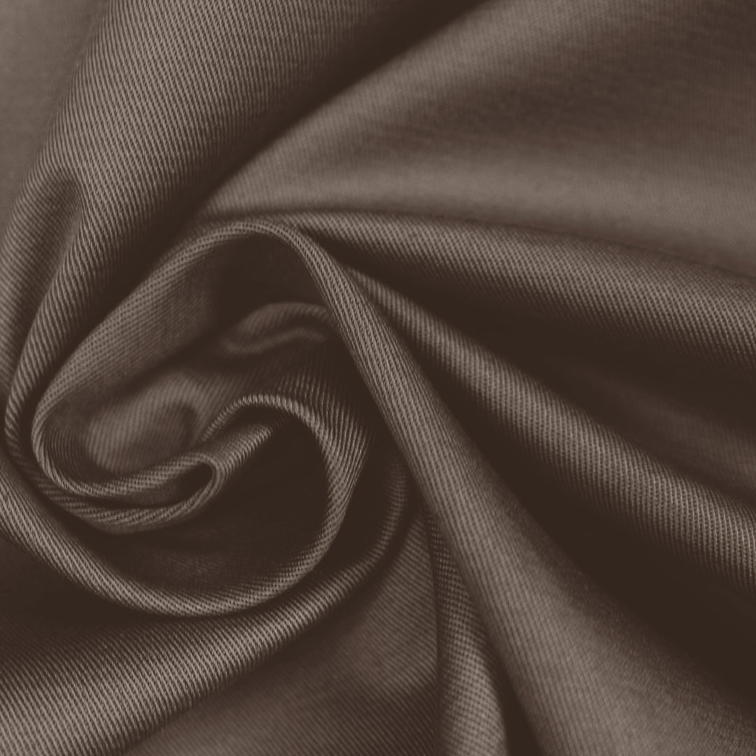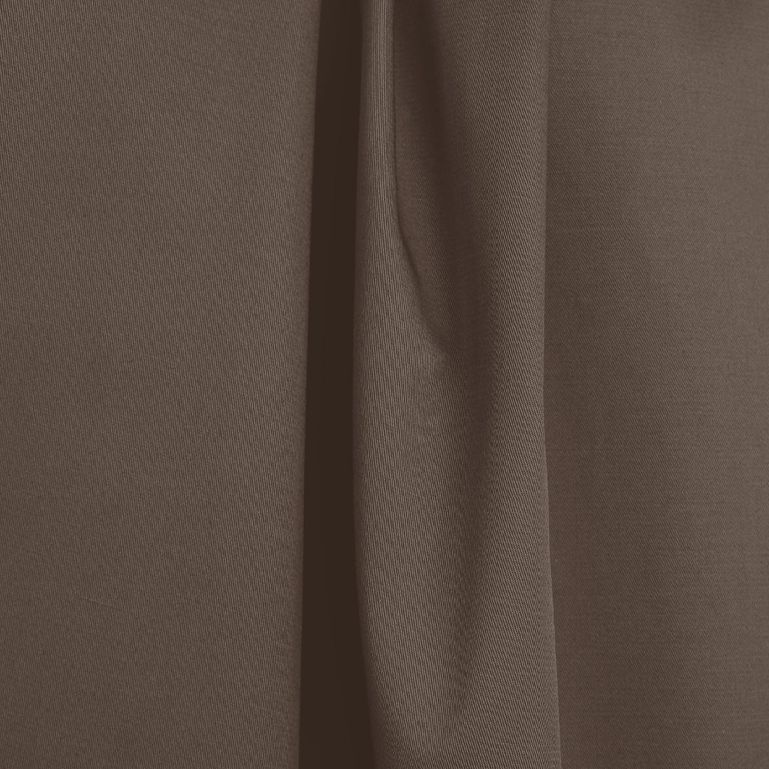 From deadstock of the famous designer, this is a wonderful and versatile cotton stretch twill with about 10% stretch in both directions and great recovery. Fantastic designer quality, opaque, bottomweight with a micro-twill texture, and a more cottony drape. Perfect weight for pants, jeans, a casual tailored jacket, dress or pencil skirt, trench coat, cotton suit, utility jacket, etc. The color is French roast (PANTONE 19-1213). Machine wash cool, hang to dry. Do not dry clean, do not tumble dry.