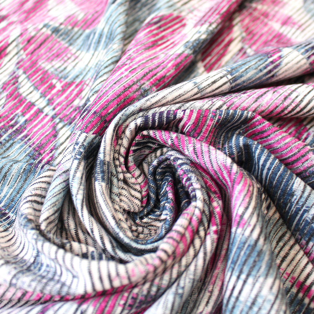 'fuchsia flowers' viscose blend variegated knit 1.875 yd