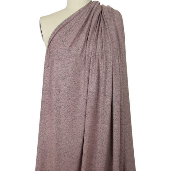 This is a soft and luxurious rayon blend sweater knit, a light weight that has a plain knit stitch on the face and purl on the reverse. The face of the fabric is brushed so that the yarn-dyed colors are softly blended and there is a cashmere-like texture to the surface. The color is a mottled dusty mauve (PANTONE 16-3304). It is opaque and tightly knit, yet light with a beautiful, soft drape. With about 50% widthwise stretch and 40% lengthwise it also has excellent recovery. Absolutely perfect for tops, tunics, sweaters, comfy and elegant separates, scarf, etc. Note the extra width! Dry clean or hand wash and lay flat to dry, but always test first. 1.875 yds.