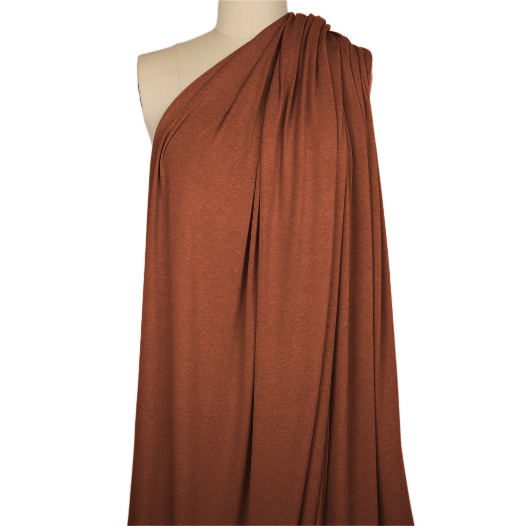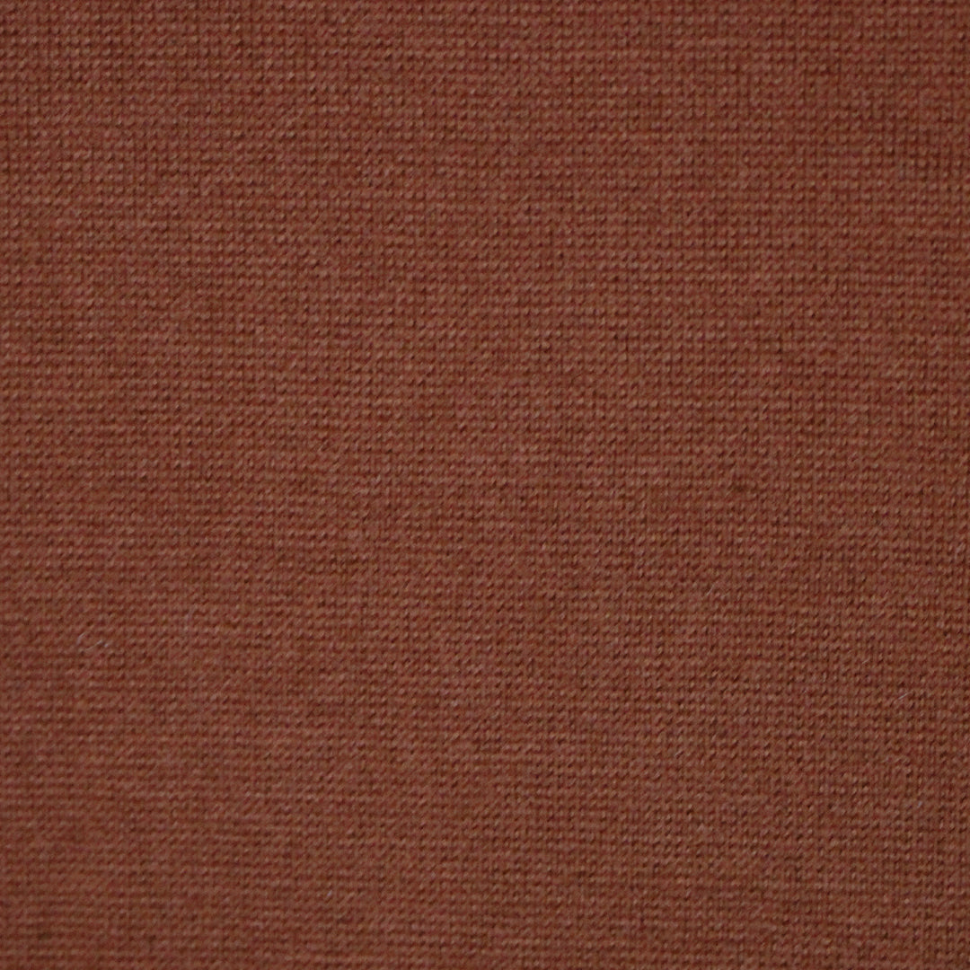 From the famous designer in the title and made in Italy, this is a wonderful quality lightweight wool jersey. The color is a lovely chipotle (PANTONE 18-1250 is close), equally saturated on both sides. It's super soft with tiny stitches and a sweatery hand, very drapey and opaque. It has about 30% stretch widthwise and 10% give in the length. Make a luxurious tee, top, tunic, pullover, a light and drapey cardigan, etc. Treat as you would any fine sweater knit, or dry clean.
