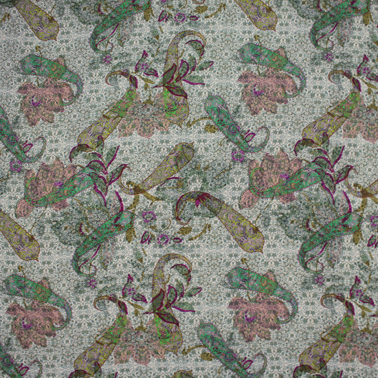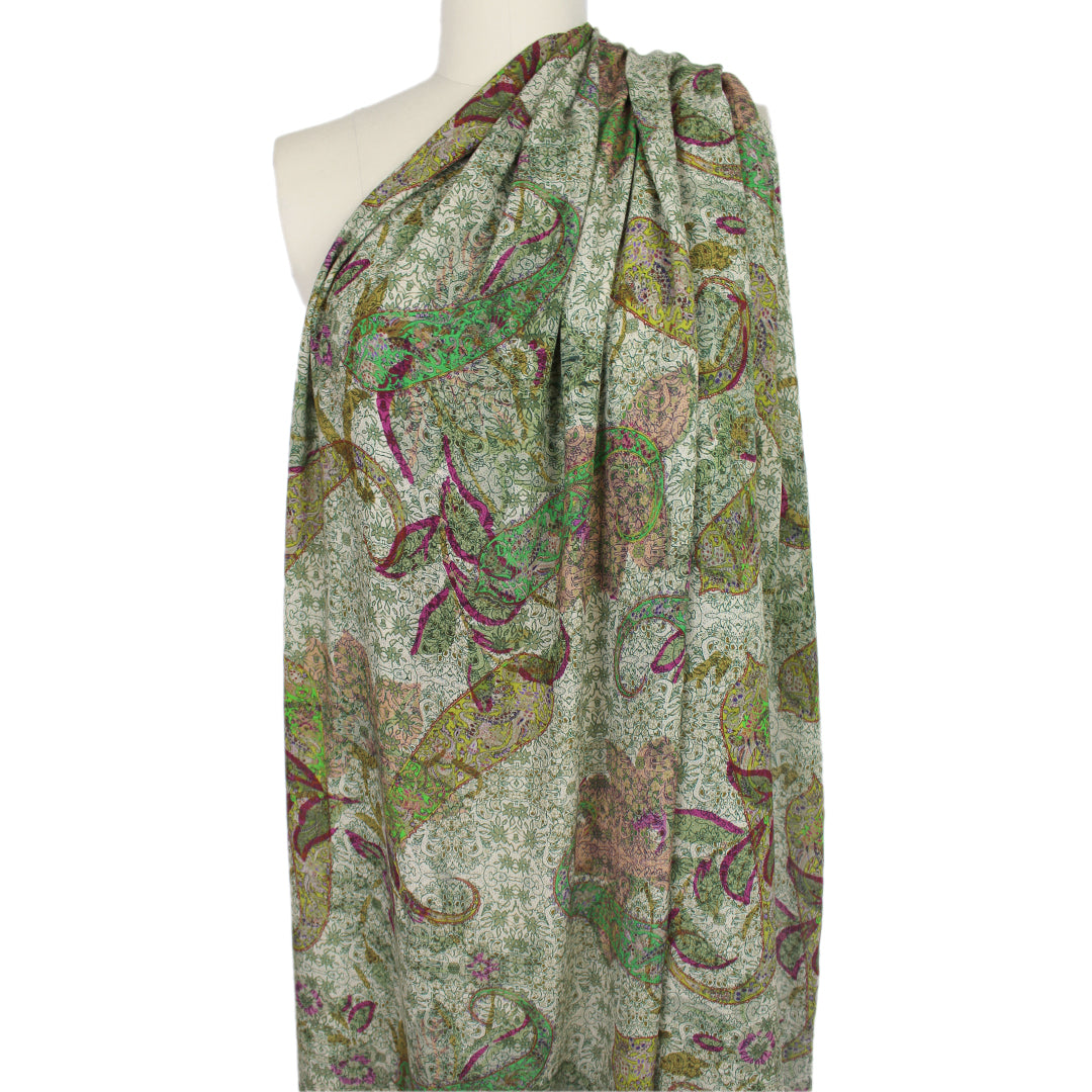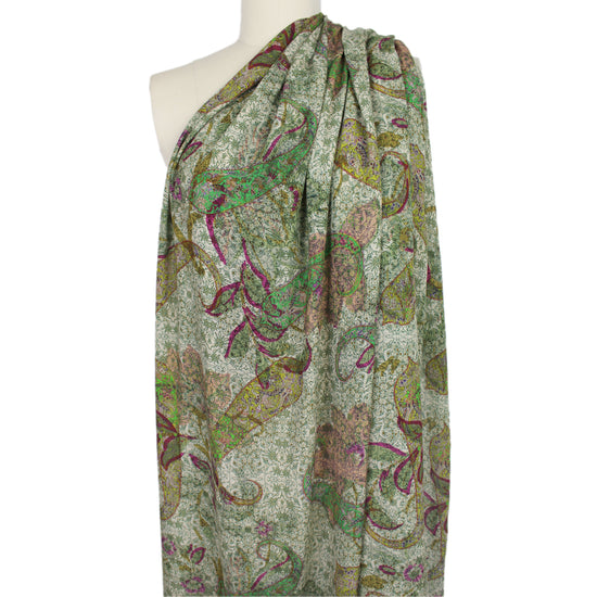 Italian 'intricate paisley' semi-sheer viscose crepe woven - olive/magenta