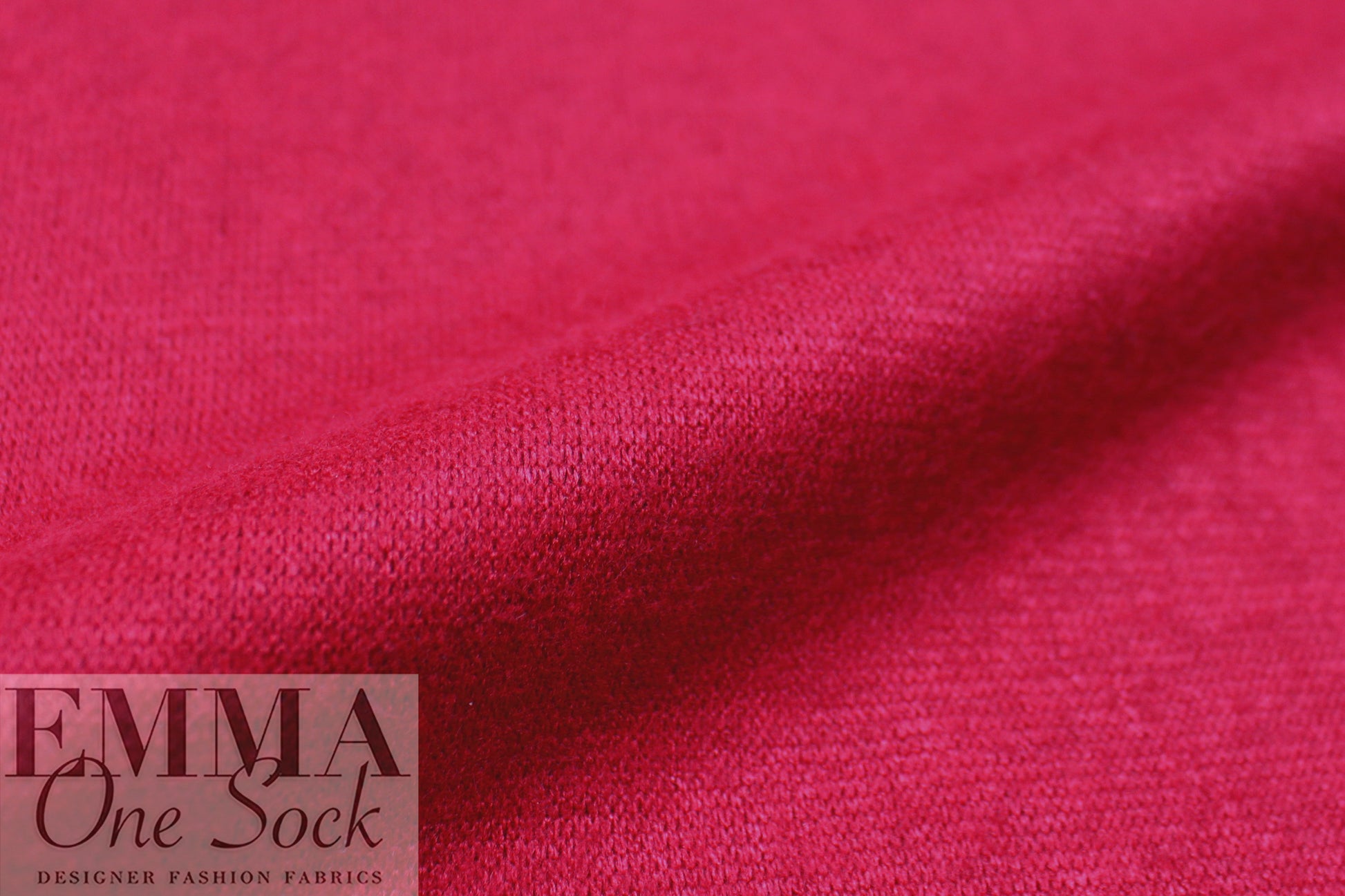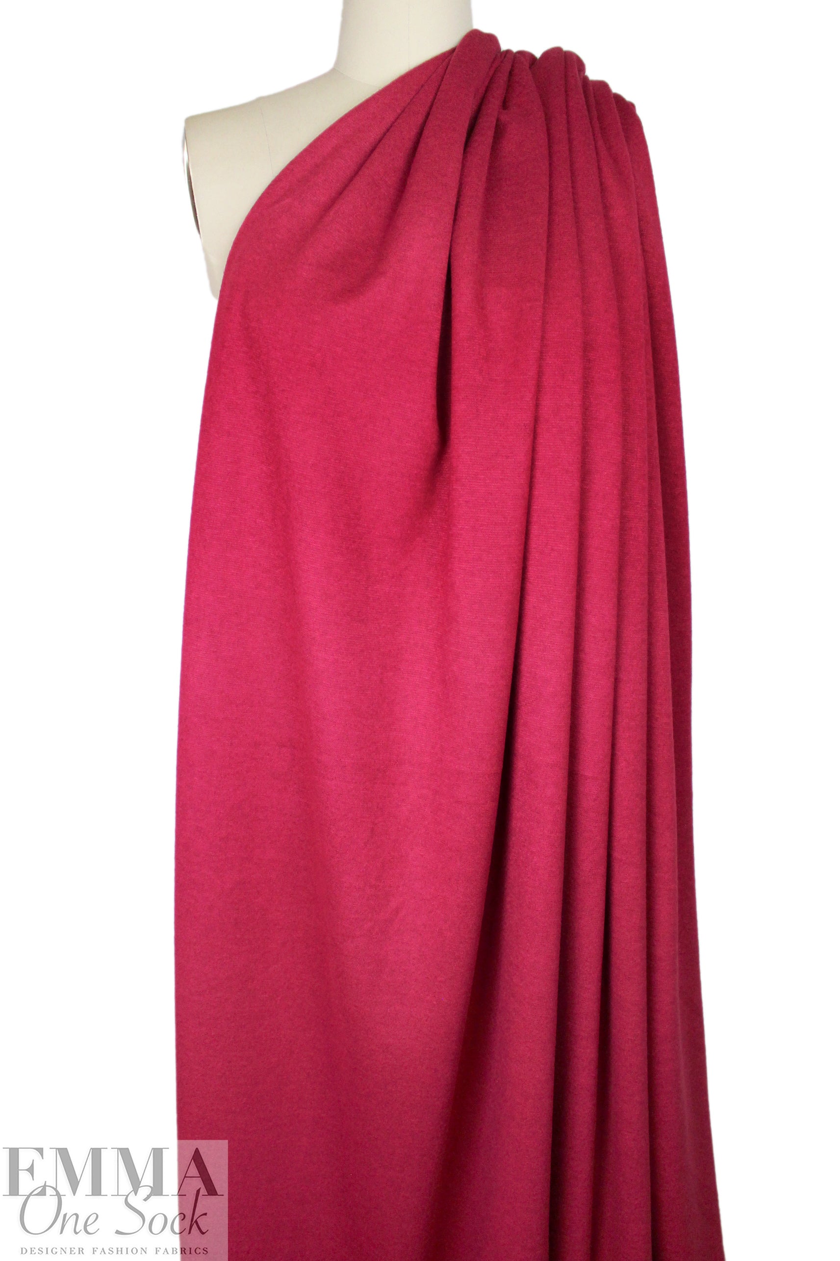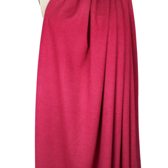 This is an incredibly soft and luxurious rayon blend sweater knit, a medium weight doubleknit that has a wonderful beefy yet supple character. The color is a vivid cerise (PANTONE 19-1955 is close). It has substance and is opaque, but is not at all dense or heavy, and has a beautiful, soft drape. With about 50% widthwise stretch and excellent recovery, it is perfect for tops, tunics, sweaters, a cardigan, sweater dress, comfy and elegant separates, scarf, hat, etc. The manufacturer recommends hand or machine wash and lay flat to dry, but always test first. 1.625 yds.