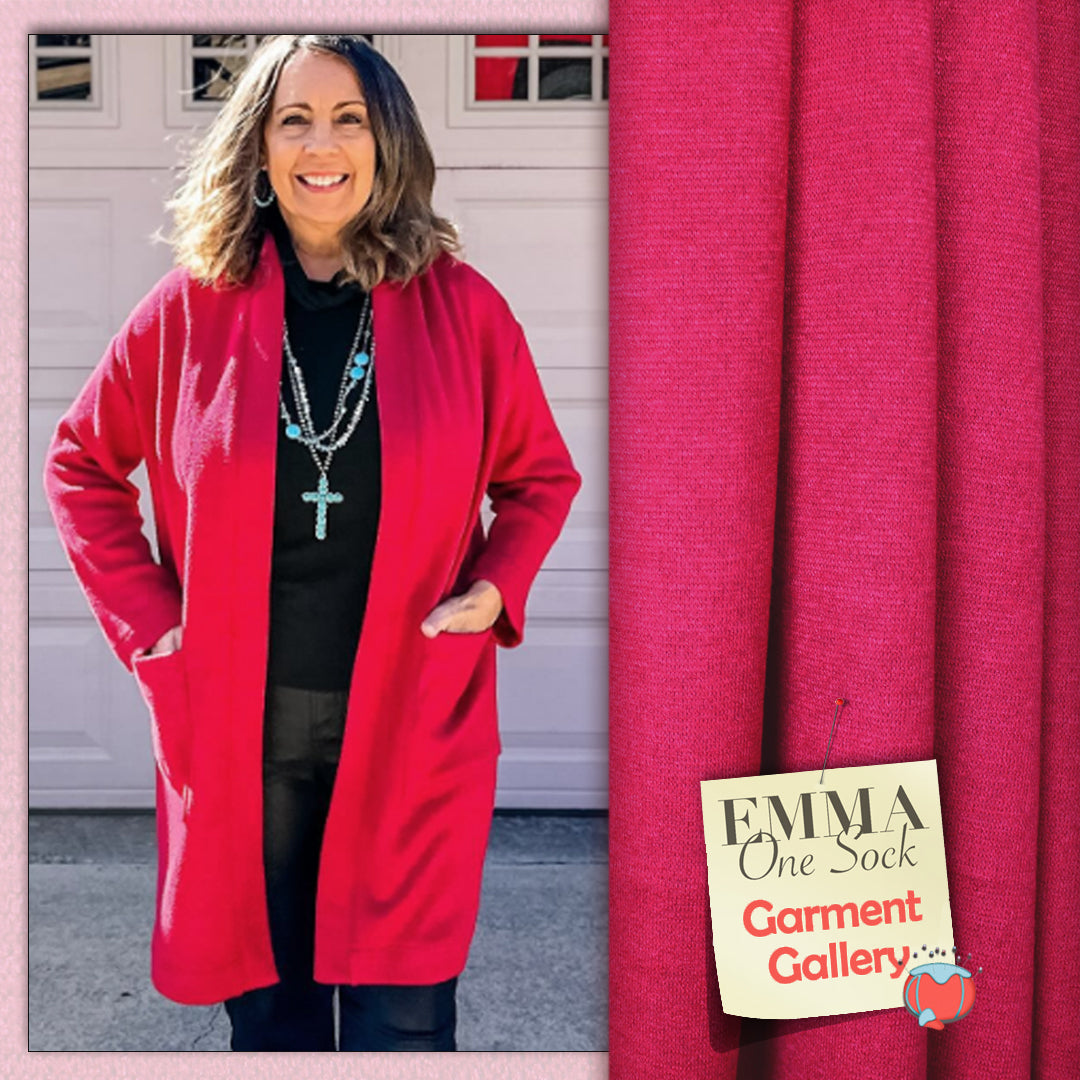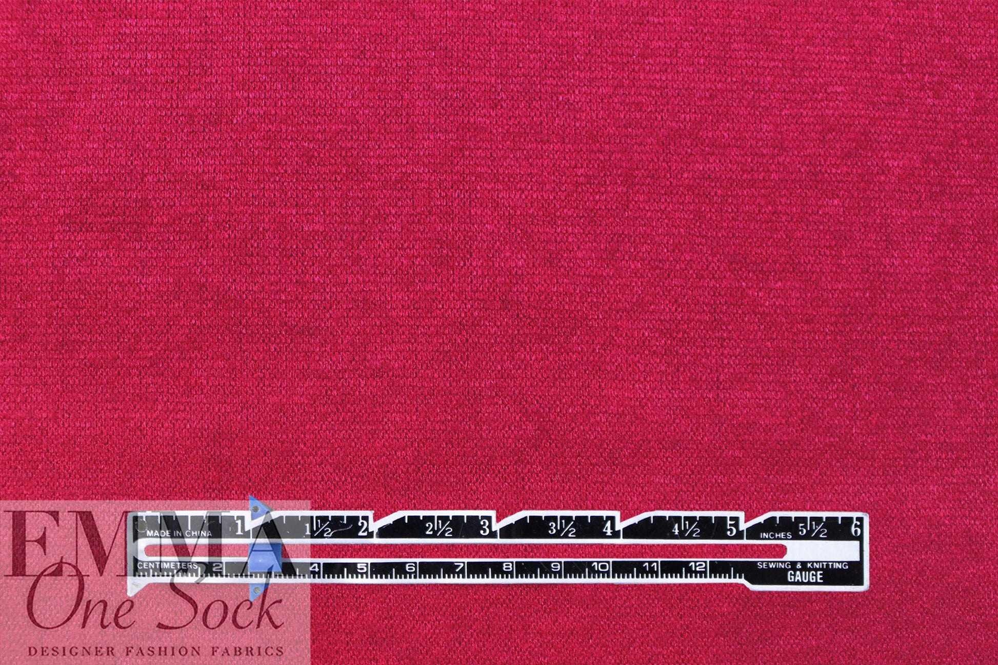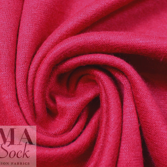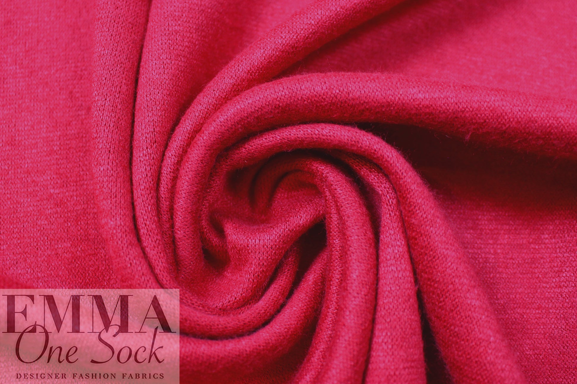 This is an incredibly soft and luxurious rayon blend sweater knit, a medium weight doubleknit that has a wonderful beefy yet supple character. The color is a vivid cerise (PANTONE 19-1955 is close). It has substance and is opaque, but is not at all dense or heavy, and has a beautiful, soft drape. With about 50% widthwise stretch and excellent recovery, it is perfect for tops, tunics, sweaters, a cardigan, sweater dress, comfy and elegant separates, scarf, hat, etc. The manufacturer recommends hand or machine wash and lay flat to dry, but always test first. 1.625 yds.