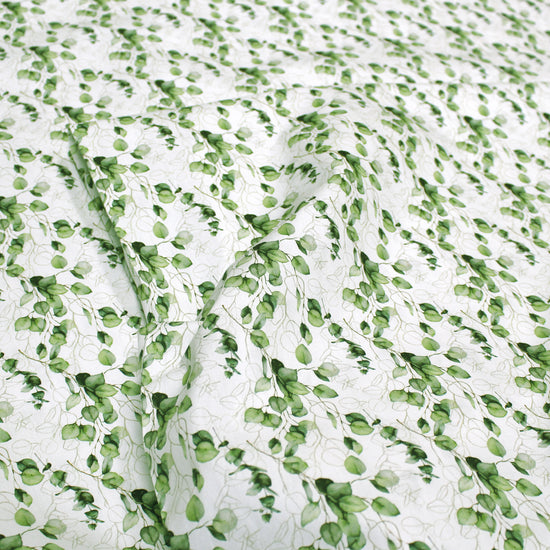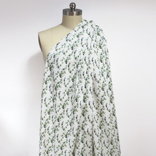 From the Netherlands, this is a 100% cotton poplin with a soft foliage print. Lightweight and completely opaque with a plain weave, it's a wardrobe staple with cottony crispness in the drape and no stretch. The "pressed leaves" pattern (6.25" repeat) features elegant stems of greenery with a pressed imprint etching on a soft white background. Perfect for classic shirts, dresses, skirts, even home decor and accessories. Hand or machine wash gentle, in cold water and hang to dry (please test first).