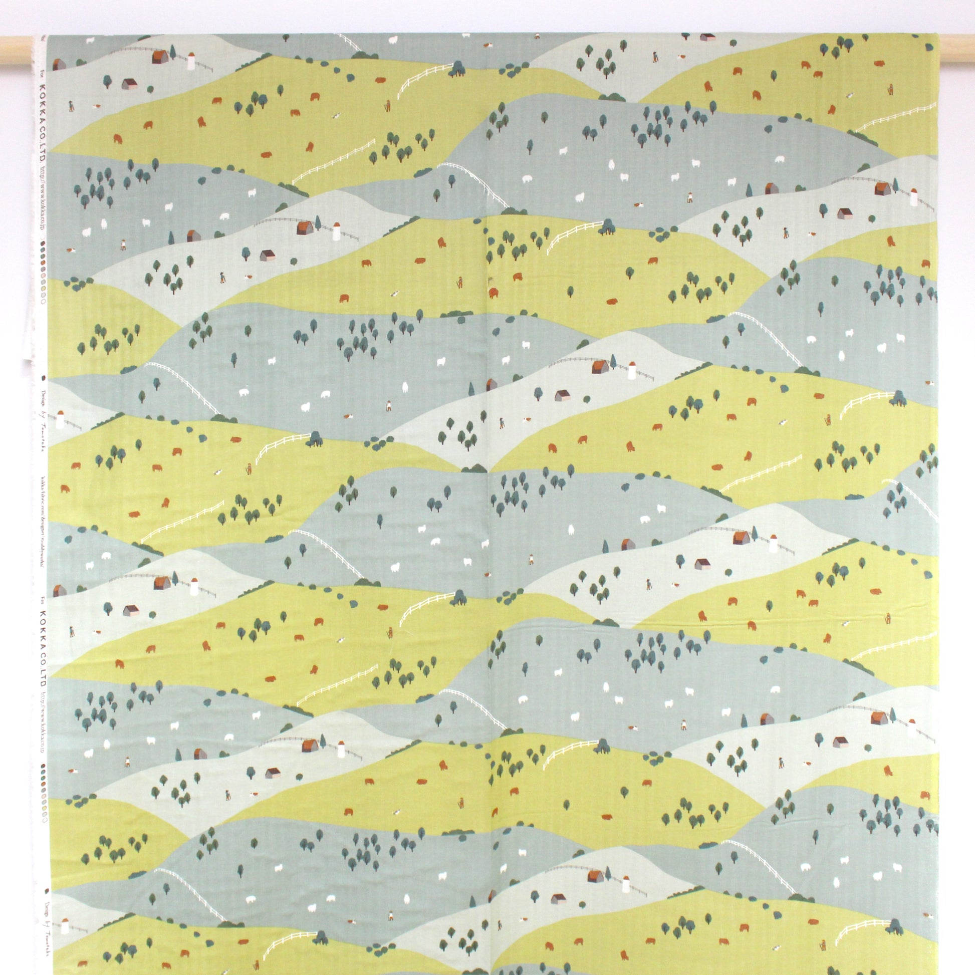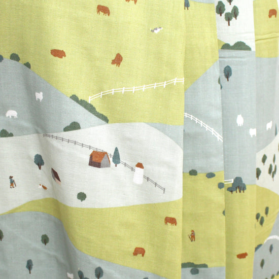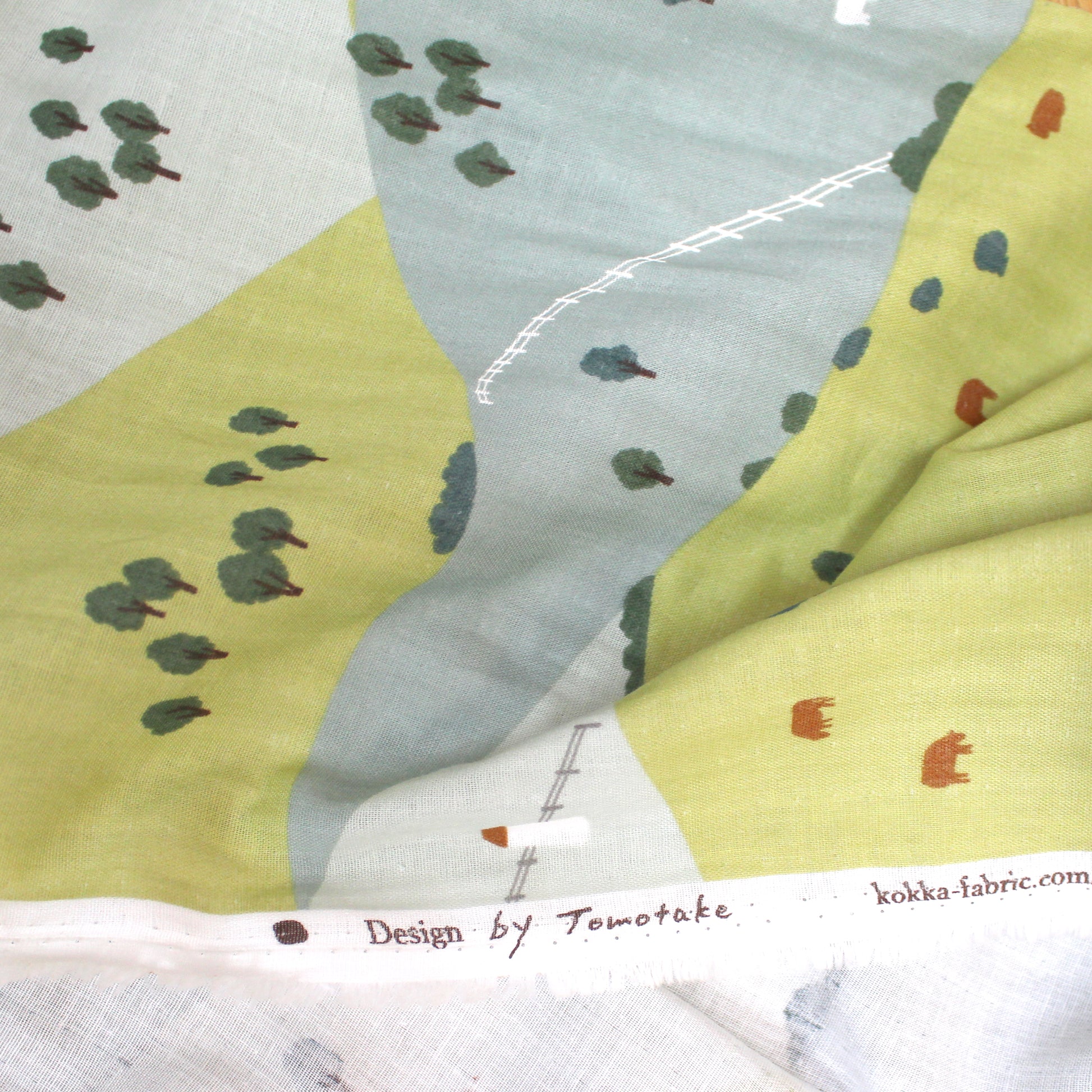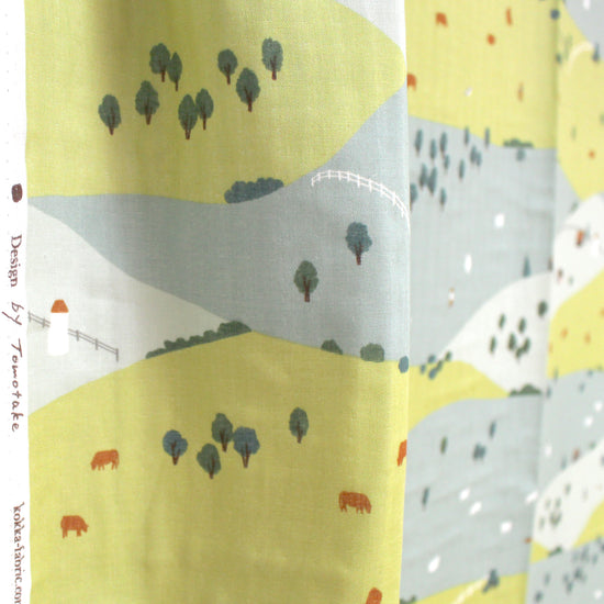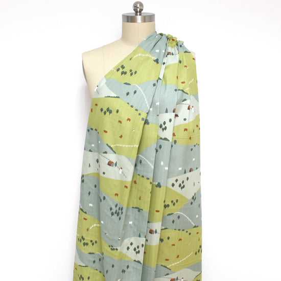 Another treasure from the Kokka Muddy Works collection, this Japanese 100% cotton double gauze features a charming depiction (24" pattern repeat) of peaceful hills. forests, houses, animals and even people are illustrated in fine detail--A piece of wearable art. This double gauze fabric is soft and highly absorbent. It becomes even softer with each wash, making it ideal for baby items, pajamas, pillow covers, and other items that come into direct contact with the skin. A beautiful choice for tops, dresses and skirts as well. If you wish to hand or machine wash, please test first. Hang to dry.