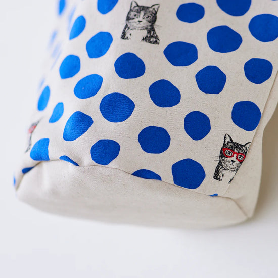 Kokka Japan "neko no e echino" dotted canvas - natural/blue