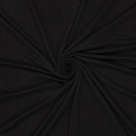 From The Netherlands, this is a gorgeous and sustainable viscose wool blend knit, with a lightweight feel and effortless drape. The weight is incredibly versatile and can be worn through any season. This fabric is opaque with a very soft hand and 30% stretch in both directions with excellent recovery. This color is a classic black. It is also Oeko-Tex certified for non-toxic chemicals and dyes. Perfect for tops, tunics, elevated tees, a knit dress or skirt, comfy and elegant separates, lightweight cardigan, etc. The manufacturer recommends hand or machine wash cool and lay flat to dry. iron on low.