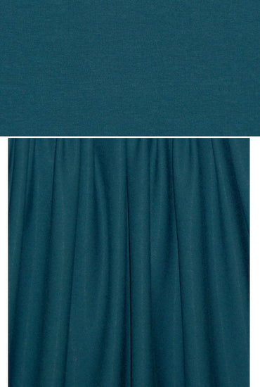 (PANTONE 19-4318 is close) A beautiful 11 oz. rayon/lycra single knit jersey in a dark teal. Rayon/lycra is cool, comfortable, incredibly soft and drapey, has great recovery, and the 11 oz. weight is fabulous for trendy tops and tees, yoga wear, flowy skirt or elastic waist pants, etc. It has about 40% stretch widthwise and lengthwise with great recovery. Machine wash gentle, hang to dry.