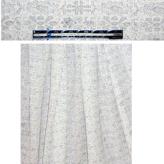 This is a printed rayon from a well-known NY designer--I love it! The base fabric is a drapey soft white rayon woven, lightweight and a bit transluscent, soft and flowing. Make a blouse, top, tunic, or line for dress or skirt. The print is fascinating---it has the look of hand-stitchery and forms a wonderfully delicate yet intricate design in soft black on the soft white ground. If you wish to wash at home, please test first. LAST PIECE, 2 yds.