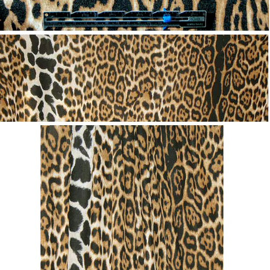 What a fabulous silk jersey print from a NY designer, nice substance to the weight, semi-opaque (you might want to line a skirt or dress) with a smooth hand and lovely drape. The stylized leopard print features burnished black with medium browns and bone (PANTONE 19-4005, 17-0942, 12-5202). The print changes from right to left, a fashion-forward element that adds interesting layout possibilities! Perfect for drapey tops, blouse, tunic, dress. Dry clean or if you would like to hand wash at home, please test first. LAST PIECE, 2 panels.