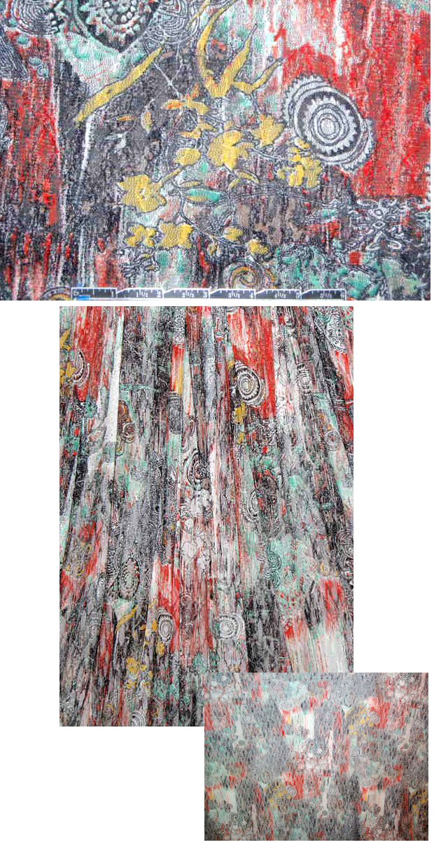 abstract design stretch lace knit - poppy/yellow/aqua 1.125 yds