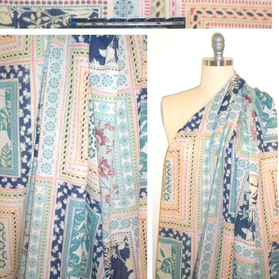 This is a gorgeous cotton voile from France, lightweight and semi-sheer with a floaty drape. The wonderful print features bandana-style 12x13" squares in a 23.5" vertical and 50.5" horizontal repeat. The colors are so wonderful: soft tones of dusty teal, navy, dusty coral, pale yellow and soft white (PANTONE 16-4712, 19-4014, 16-1626, 11-0616, etc.). Perfect for peasant-style blouses, tops, or line for tunics, dresses, skirts, etc. Please test first if you wish to hand wash, and hang to dry.