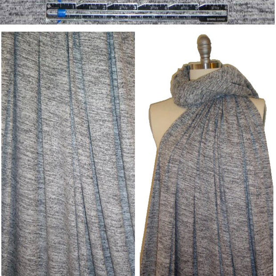 This is a lovely rayon blend sweater knit, a yarn dyed knit that is super soft, lightweight and opaque with lots of drape. It has 30% stretch in the width, 20% in the length. The colors are a white and medium gray mix (PANTONE 18-0000 mixed with white). The reverse is nice too, so it's perfect for drapey cardigan, tee and top styles. Manufacturer recommends machine or hand wash, tumble dry low, medium iron. Please test first. 1.75 yds.