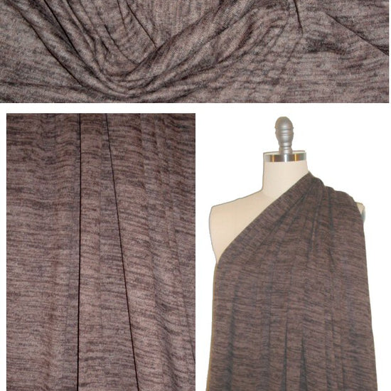 This is a lovely yarn-dyed sweater knit, a variegated knit that is super soft, lightweight and semi-opaque with lots of drape. It has 50% stretch in the width, 20% in the length. The colors are a beautiful blend of shades of mocha (PANTONE 18-1306, 19-0812). The reverse is nice too, so it's perfect for drapey cardigan, tee and top styles. Manufacturer recommends hand wash, lay flat to dry. 2.25 yds.