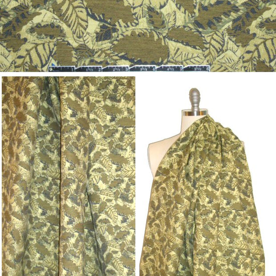 From 0pening Ceremony, this is a wonderful dress/suiting weight reversible jacquard brocade, with a gorgeous leaf design in shades of lemon grass, thyme, moss, etc. (PANTONE 12-0626, 17-0627, 17-0525, etc.). It has a soft and malleable cottony drape and a refined and tight weave. This fabric is perfect for a dress, skirt, jacket, vest, etc. Please test first if you wish to hand wash and hang to dry, or dry clean.