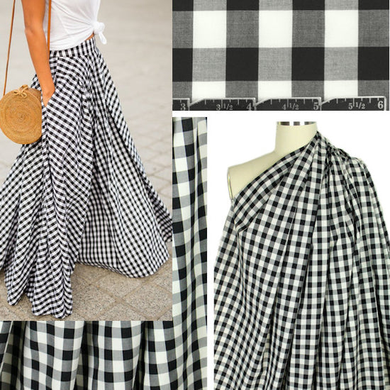 This is a very fine quality and super trendy yarn-dyed cotton gingham plaid woven from Italy, a nearly opaque shirting weight woven with a very dry hand and smooth surface texture. It is light weight with a cottony crisp drape. The black and cream gingham plaid design has a 1" repeat and is perfect for mens or ladies shirts, or ladies top, tunic, dress, skirt, etc. Hand or machine wash separately, cold, hang to dry, medium iron (please test first!). 1.375 yds.