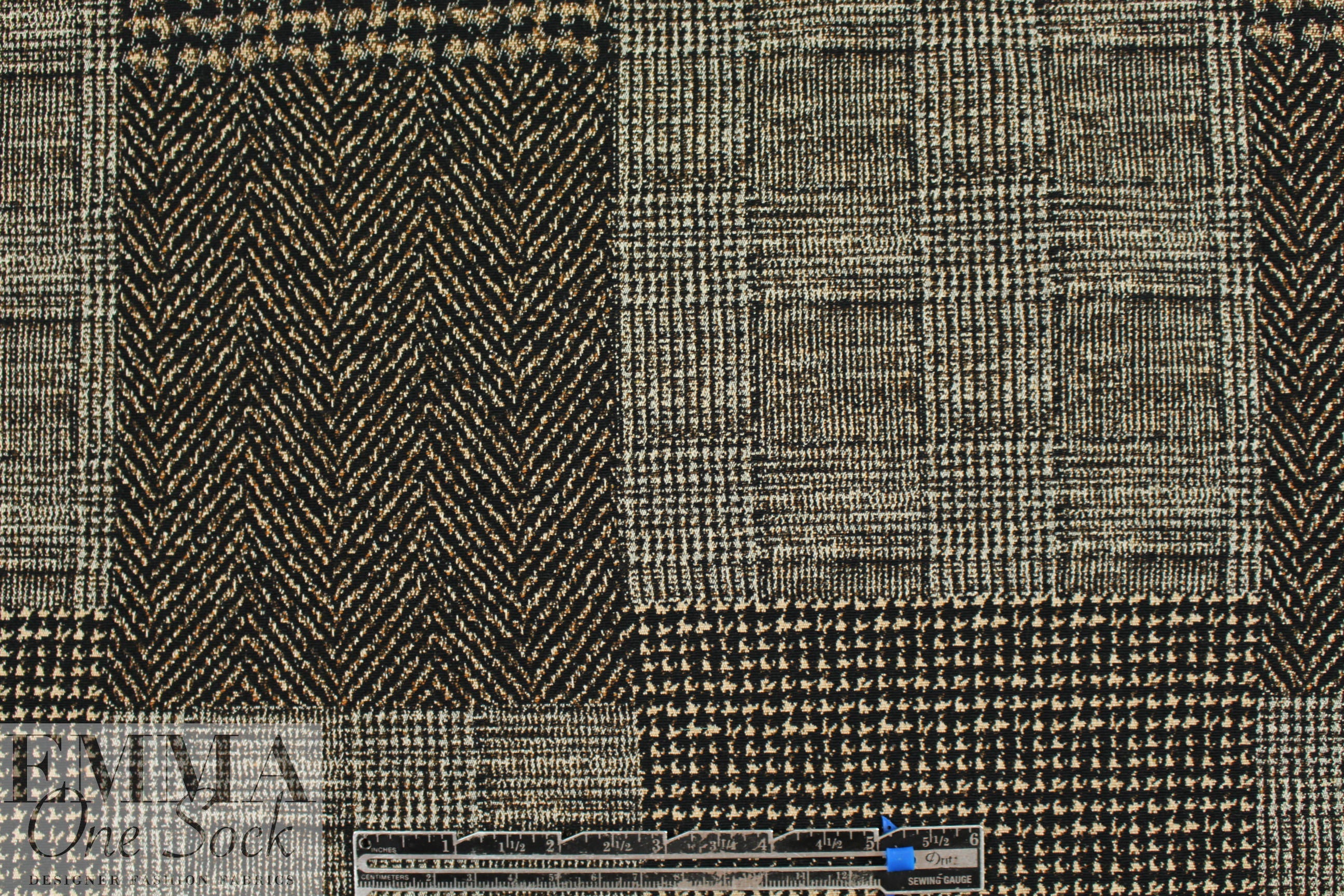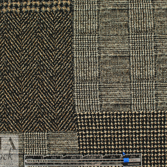 Italian herring/glen/tweed patchwork stretch brocade 1.125 yds