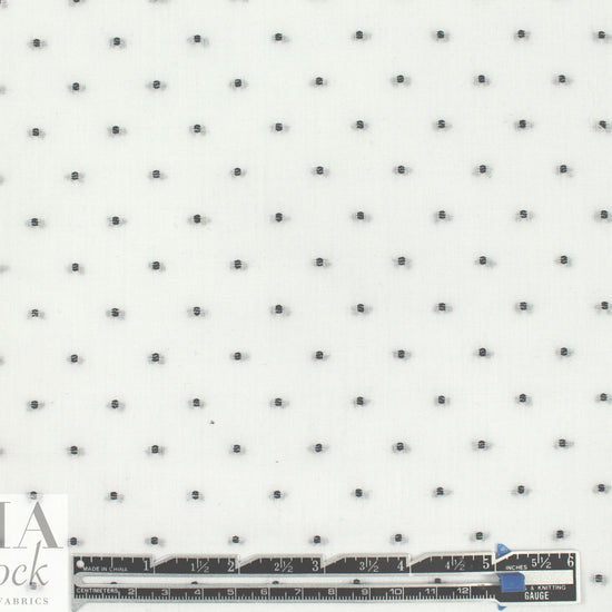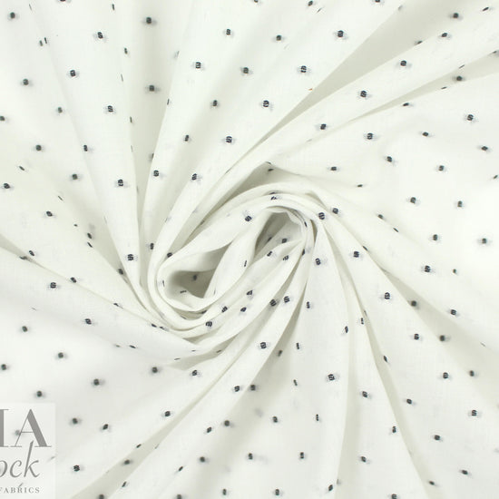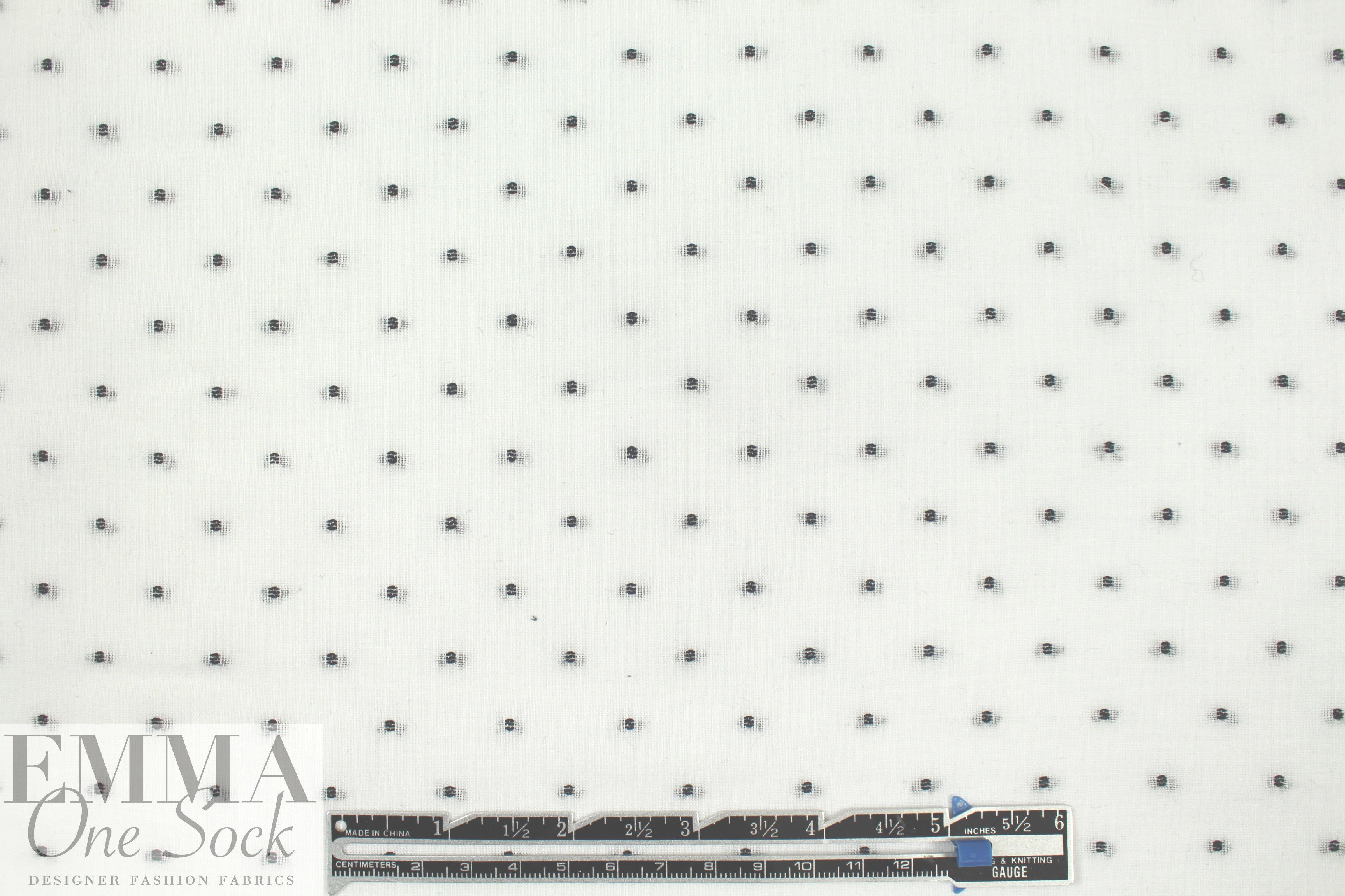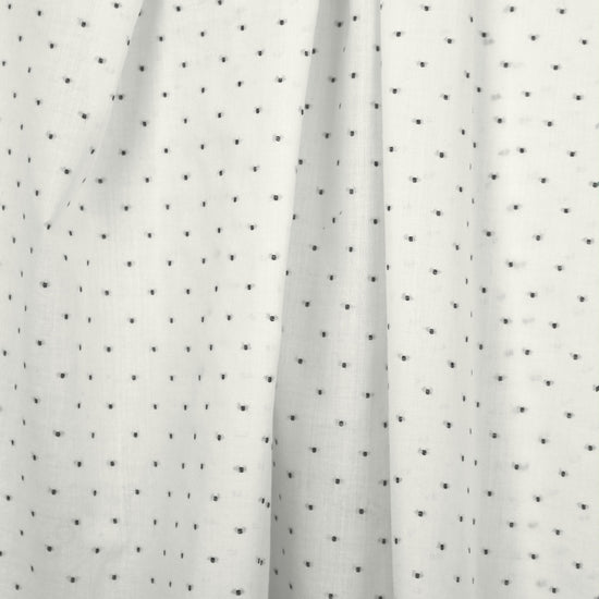 This is a lovely quality swiss dot woven shirting from a NY designer. Lightweight and a little sheer, it has a soft drape and a clipped weave to create the dots. The colors are black and white, and it is perfect for a shirt blouse, tunic, etc. Test first for hand washing in cold water, hang to dry. 3 yds.