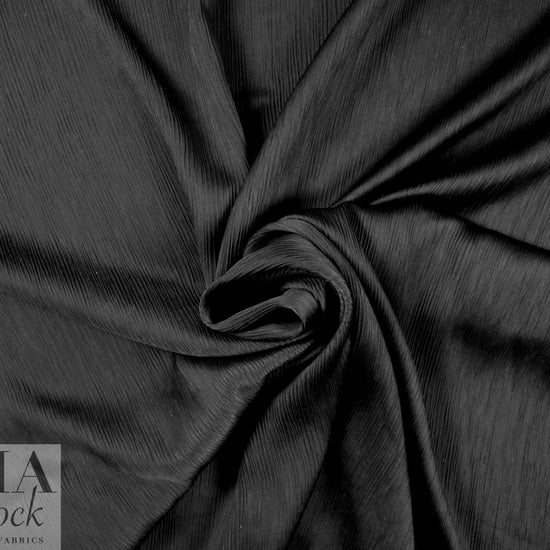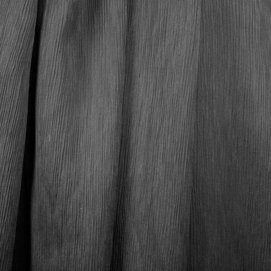 This beauty is a textured viscose stretch plisse' in jet black, with a wonderful informally pleated texture (vertically oriented) and about 25% widthwise stretch with perfect recovery. It is a dress weight fabric, nearly opaque, with a bit of body in the drape and a beautiful surface texture. This is a fabric that can go from casual to office to evening and is perfect for shirt, tunic, dress, skirt, top, etc. Dry cleaning recommended. 1.375 yds.