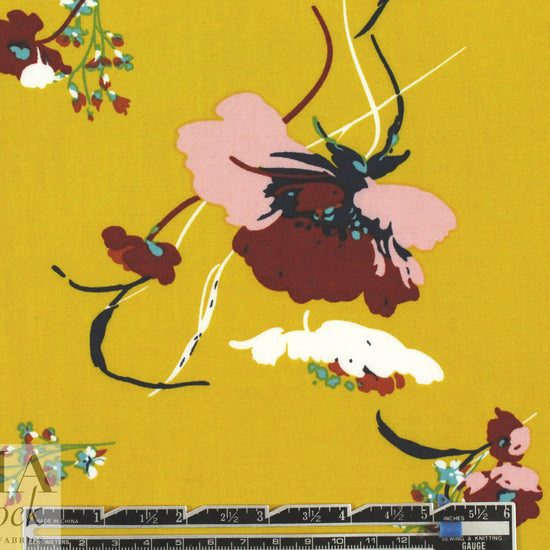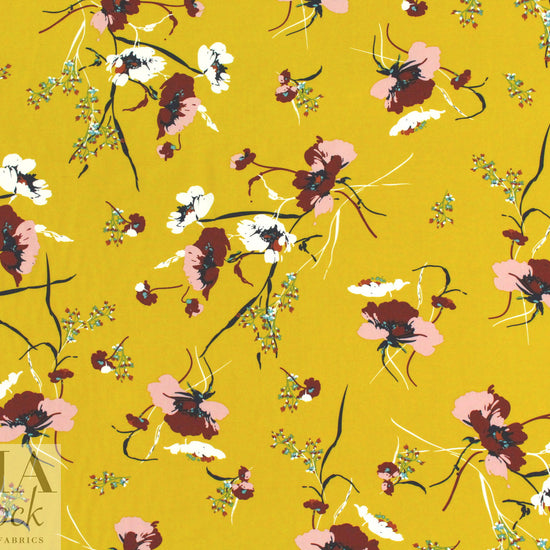 'les fleurs' drapey viscose woven - mustard 1.75 yd